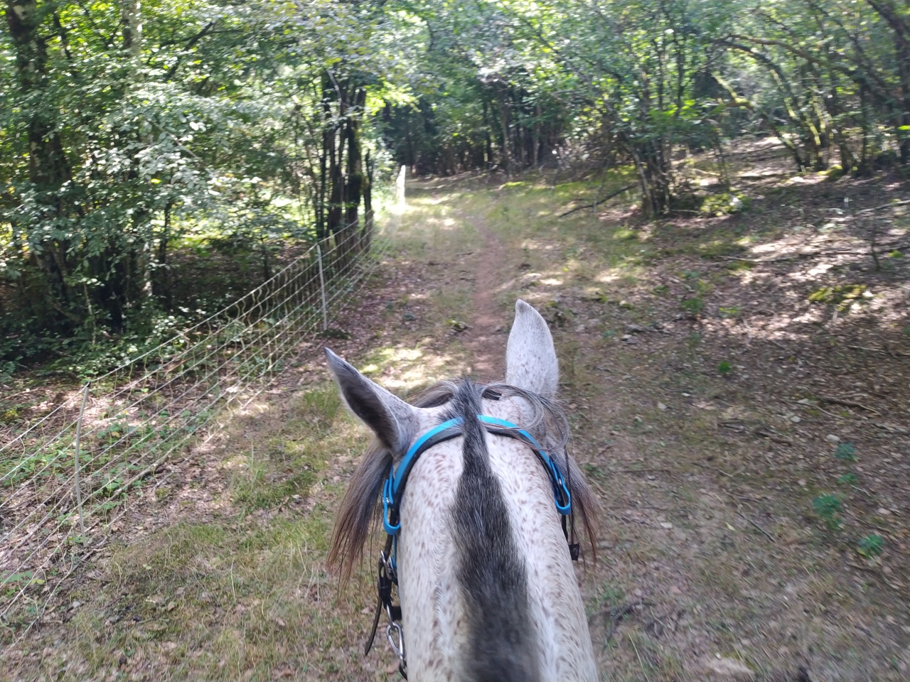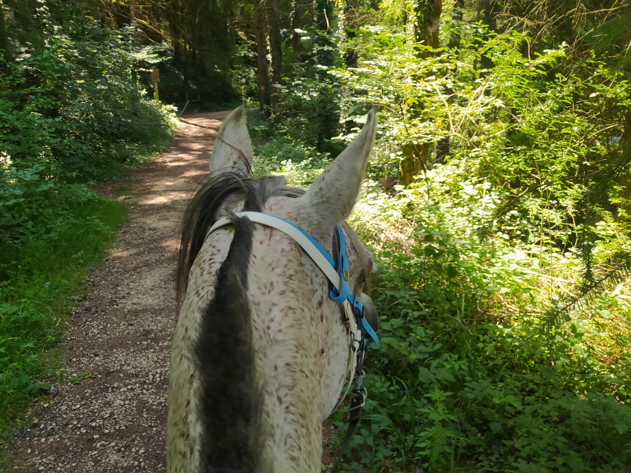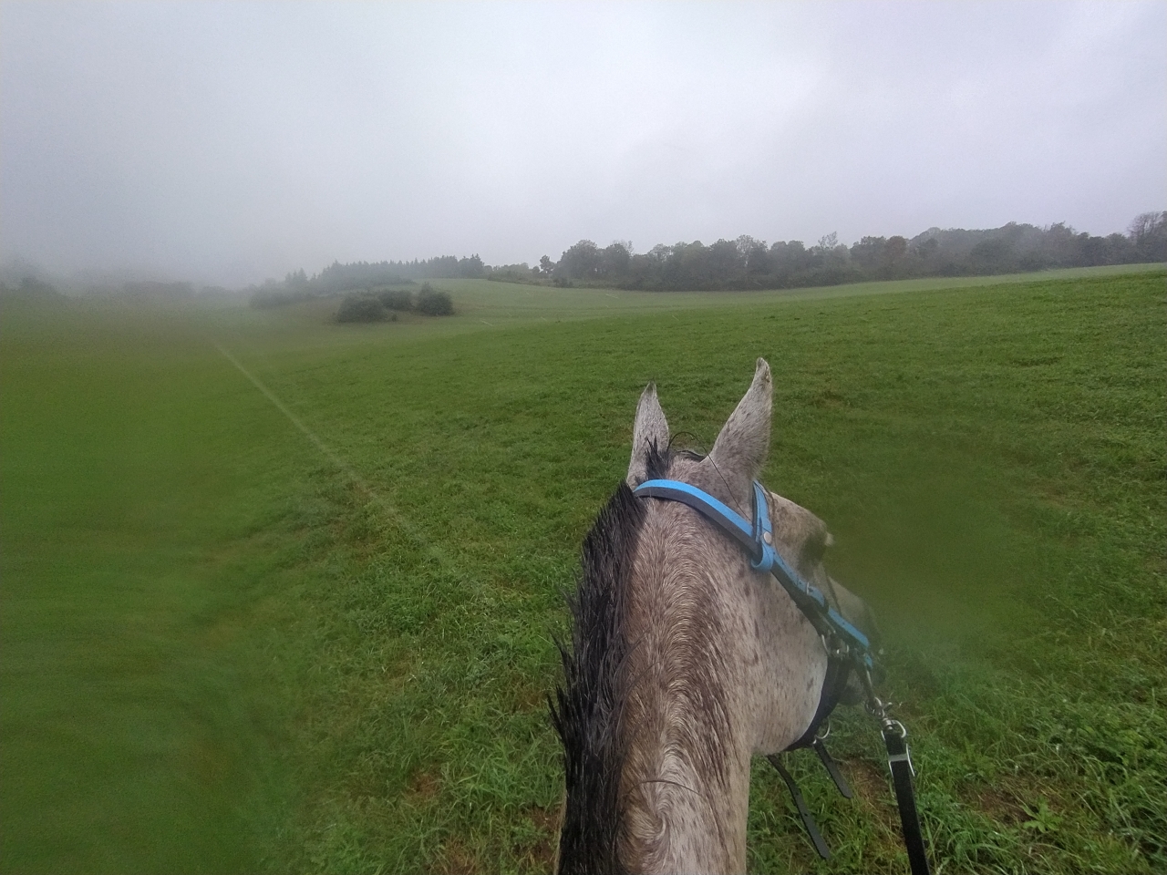 | Dire merci | retour jeudi de nos vacances en famille pour découvrir que Java a déferré d'un antérieur ![]() du coup c'est Naska et Quiara qui sont sorties mercredi avec M et sa maman tout s'est bien passé, Quiara n'a pas fait trop sa chiasse elle a juste blessée au passage de sangle mais vu le ventre qu'elle se paye... Dimanche matin c'était mon seul créneau pour monter et il faisait un temps... finalement j'y suis allée quand même c'était bien jusqu'à ce qu'on se fasse attaquer par des Kangols les chiens se sont mis à nous courser j'ai réussi à arrêter la jument (je me voyais déjà pas en haut de l'affiche mais bien dans le décor...) assez rapidement et elle s'est figée. Un des chiens venait au contact sur les postérieurs, j'ai regretté qu'elle tape pas ![]() évidemment le proprio s'est excusé mais bon ca fait pas tout ... quand on a des chiens cons sans rappel ben on les attache... non ? bref... on a continué la sortie mais évidemment elle avait la queue entre les fesses à sursauter pour rien, ca nous a un peu gaché la sortie déjà bien assez humide ![]() |