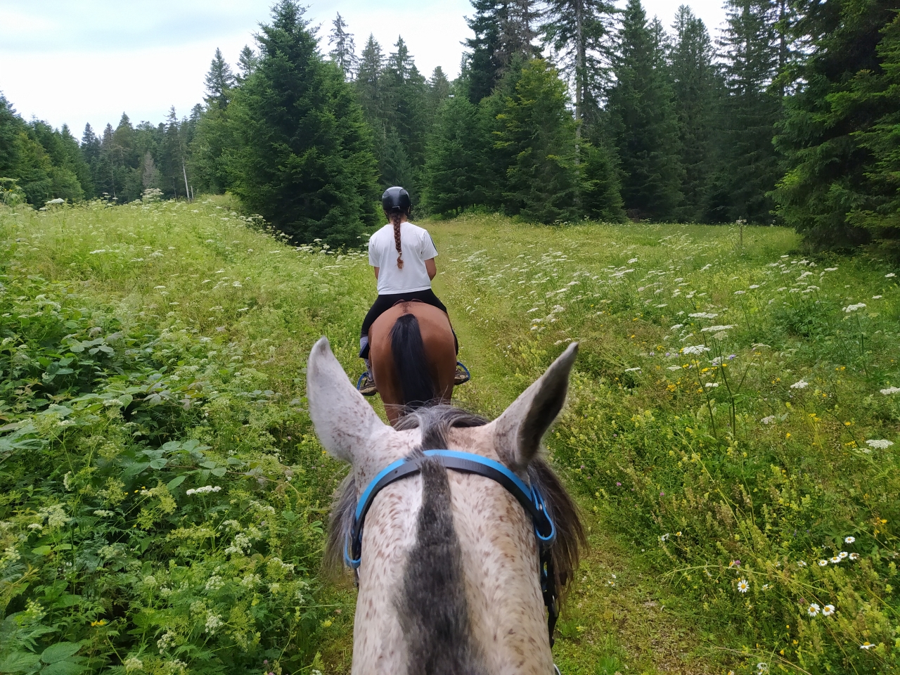 | Dire merci | Dimanche matin, sortie d 1h30 en amoureuses![]() ![]() ![]() Rien a signaler si ce n est qu elle prend de mieux en mieux le galop a droite d elle même, ce qui était son point faible ![]() M est venue monter Java (20km en 2h30) lundi Là on attend le MF qui passe jeudi pour la remonter car elle est au bout de sa ferrure Et je me suis organisée pour partir deux jours en rando dans 15j avec M ![]() On voulait faire une nuit à l extérieur mais vu les tarifs hallucinants, on va plutôt se faire nos 50km dans la journée, rentrer à la maison dormir et repartir le lendemain si ça continue ![]() |