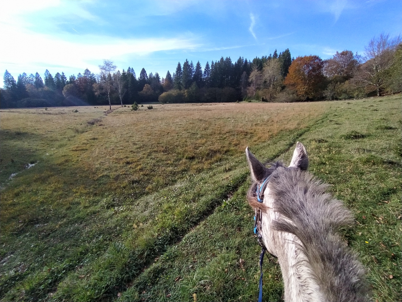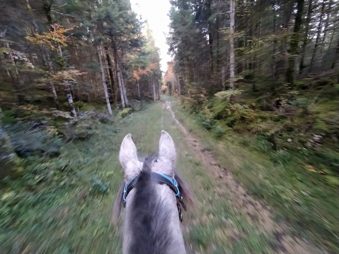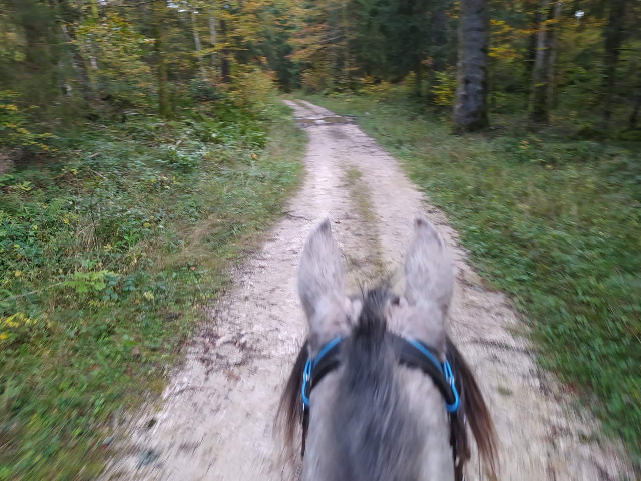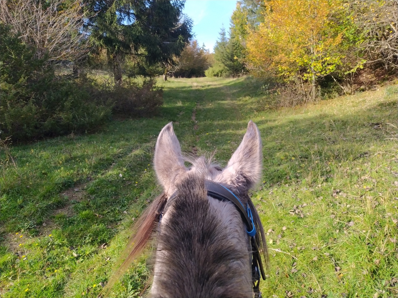 | Dire merci | du coup comme le proprio l'emmène directement chez lui, on part le soir meme et dimanche, balade à deux, euh à 4 ![]() ![]() le temps était top ! les juments aussi ![]() ![]() ![]() on rentre après une heure de douceur ![]() |
