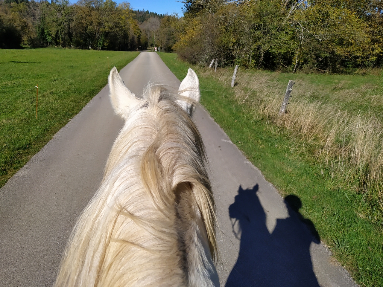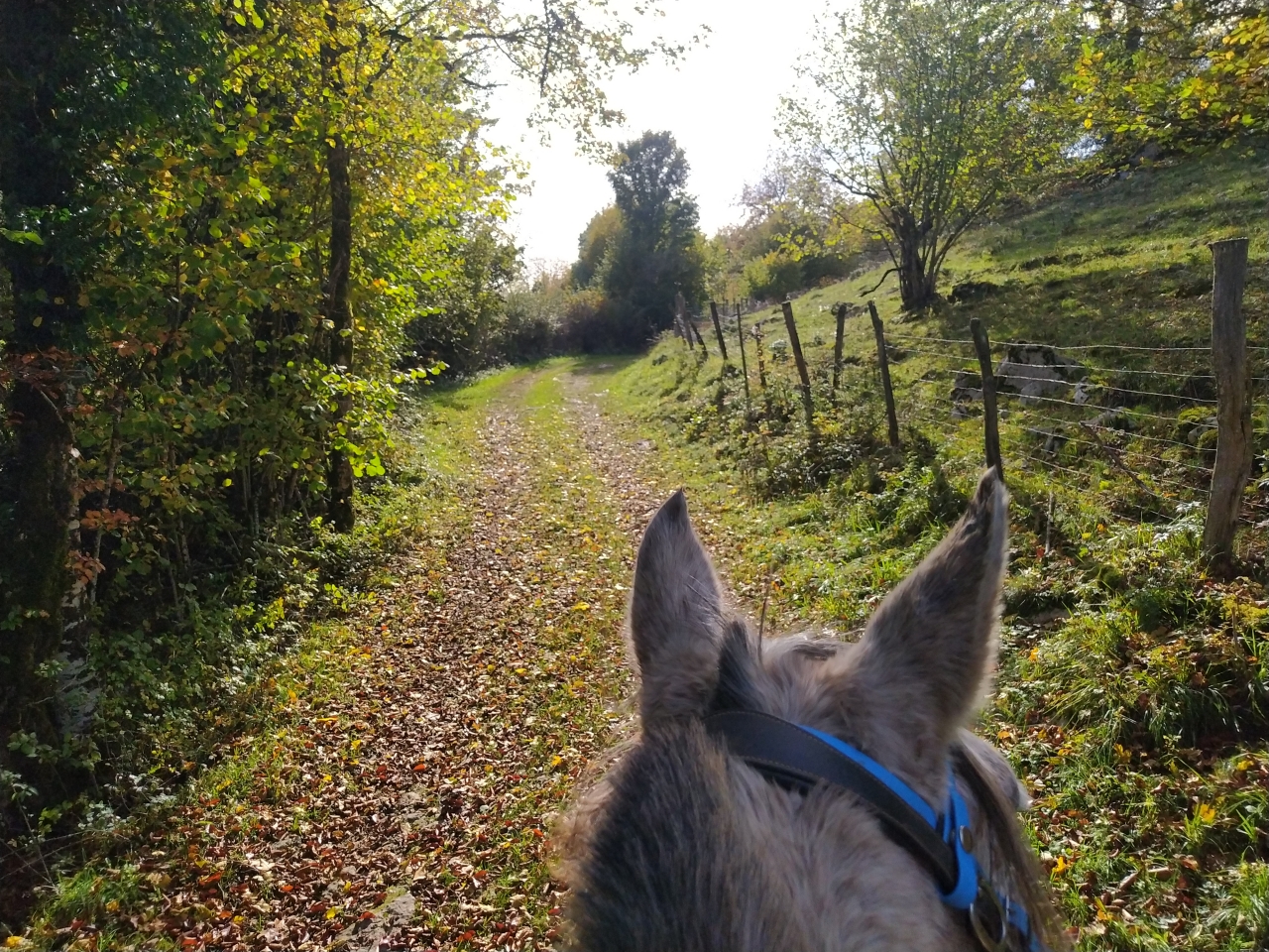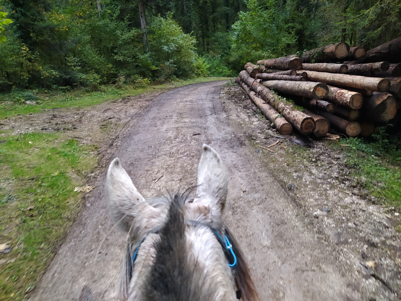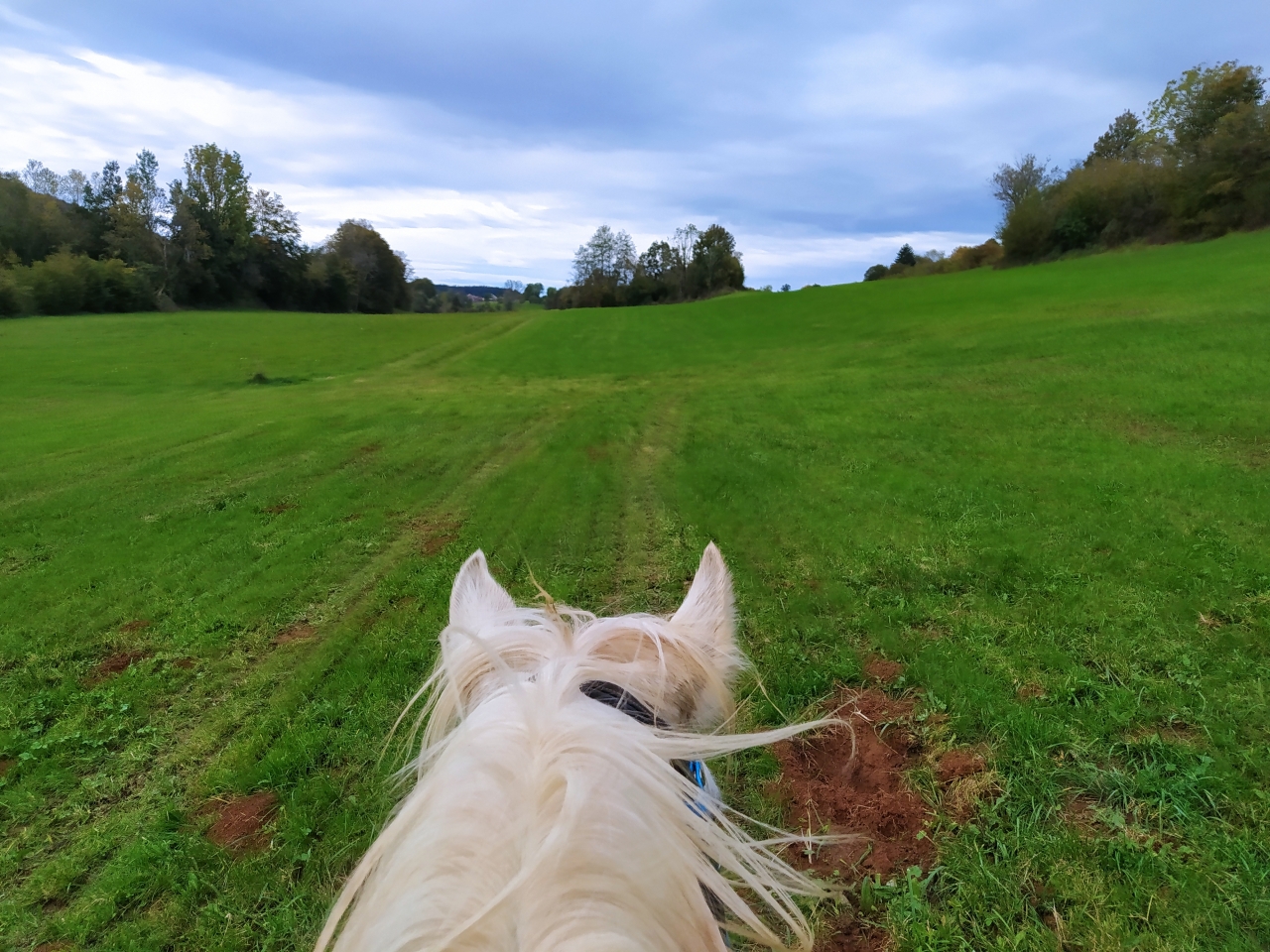 | Dire merci | du coup comme le proprio l'emmène directement chez lui, on part le soir meme et dimanche, balade à deux, euh à 4 ![]() ![]() le temps était top ! les juments aussi ![]() ![]() ![]() on rentre après une heure de douceur ![]() |