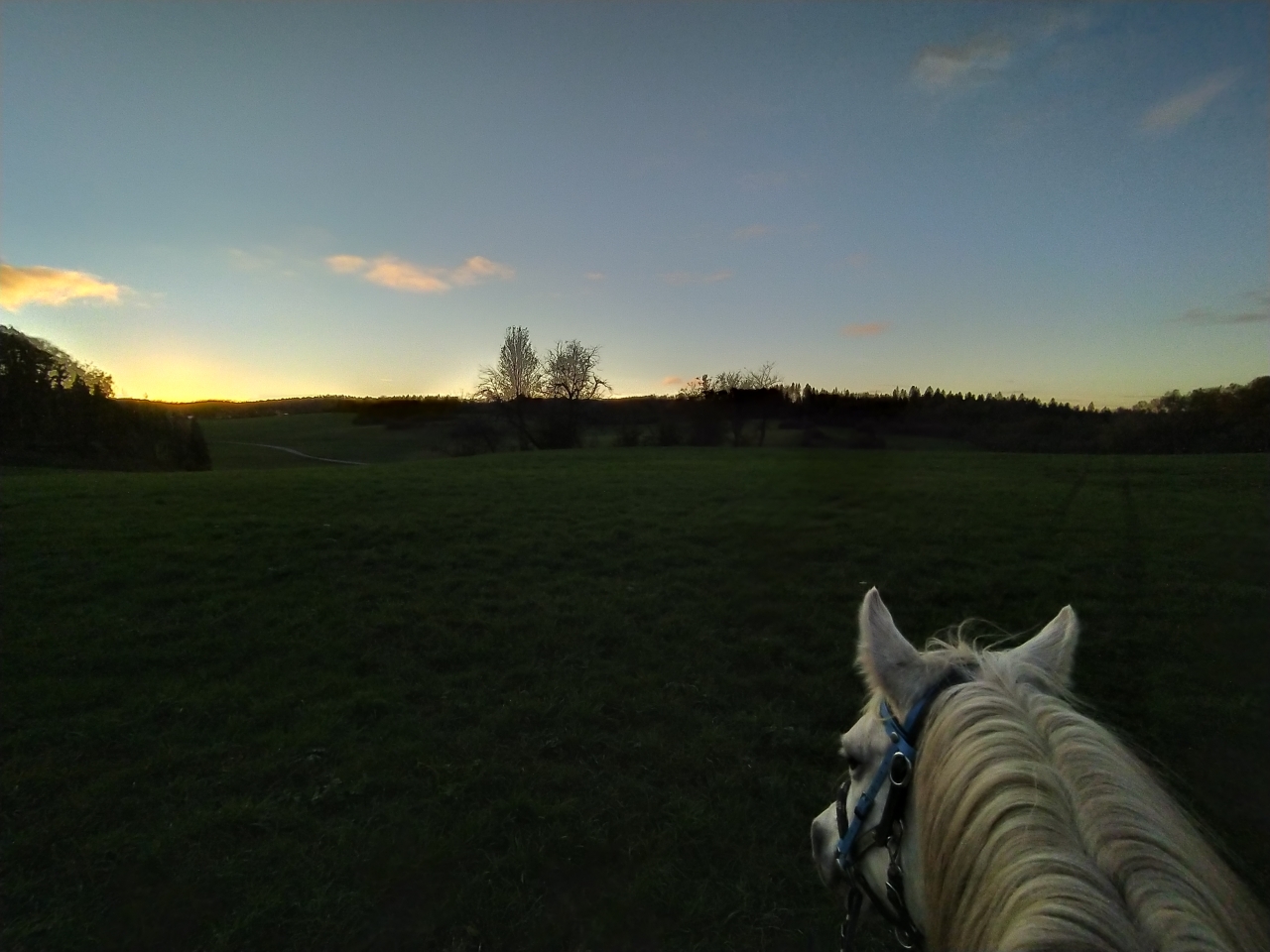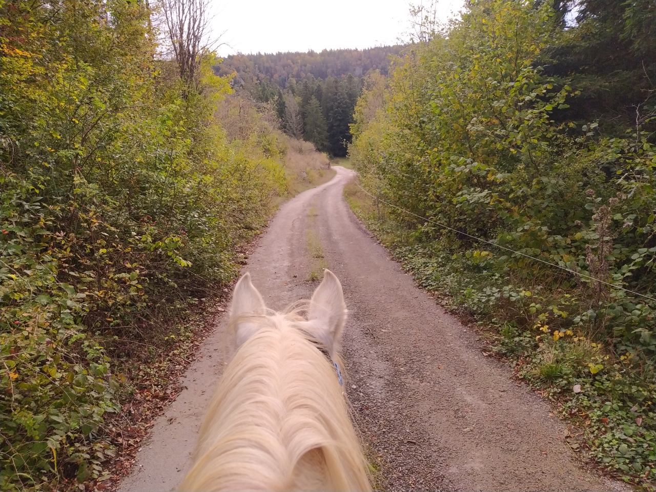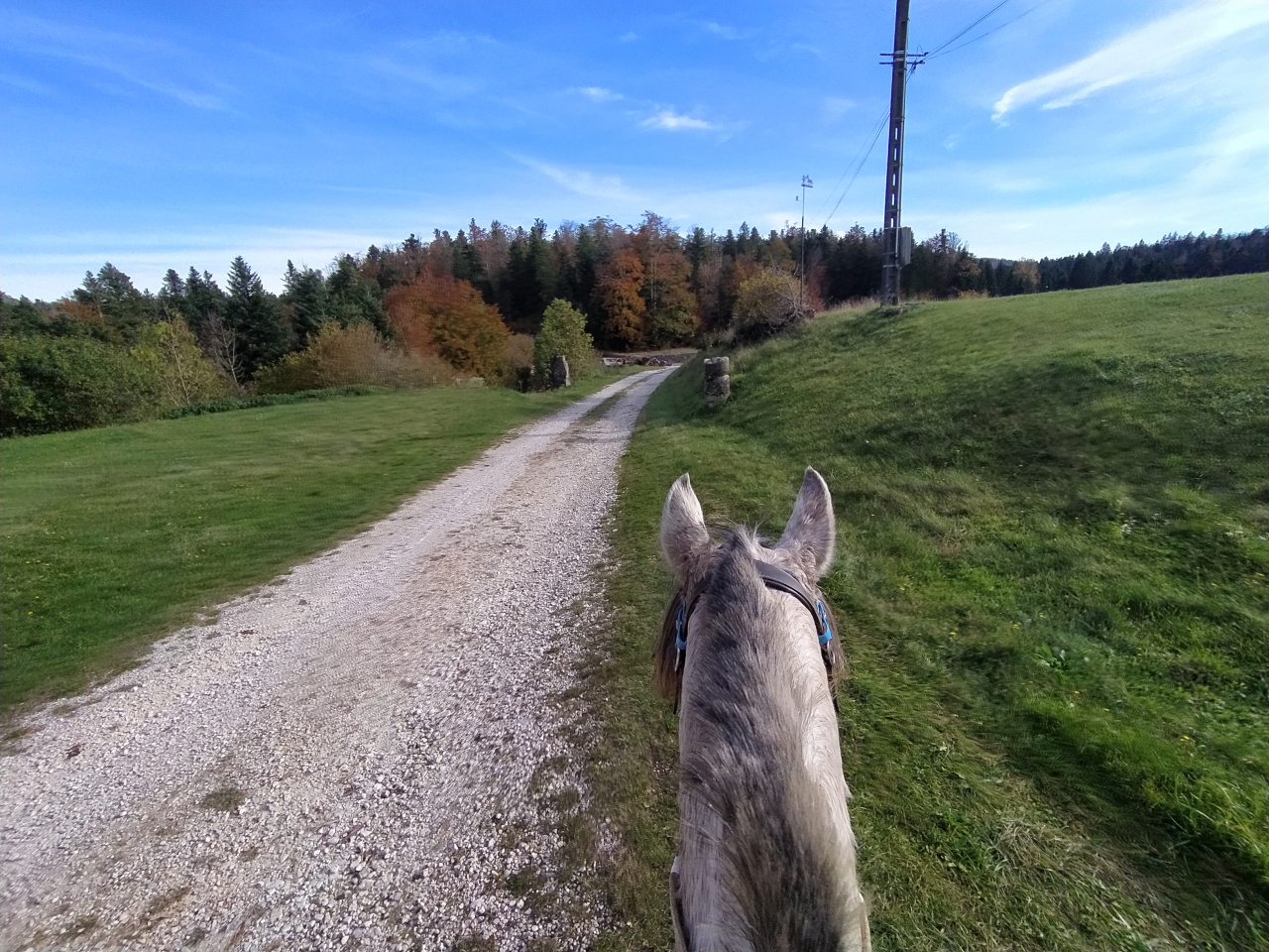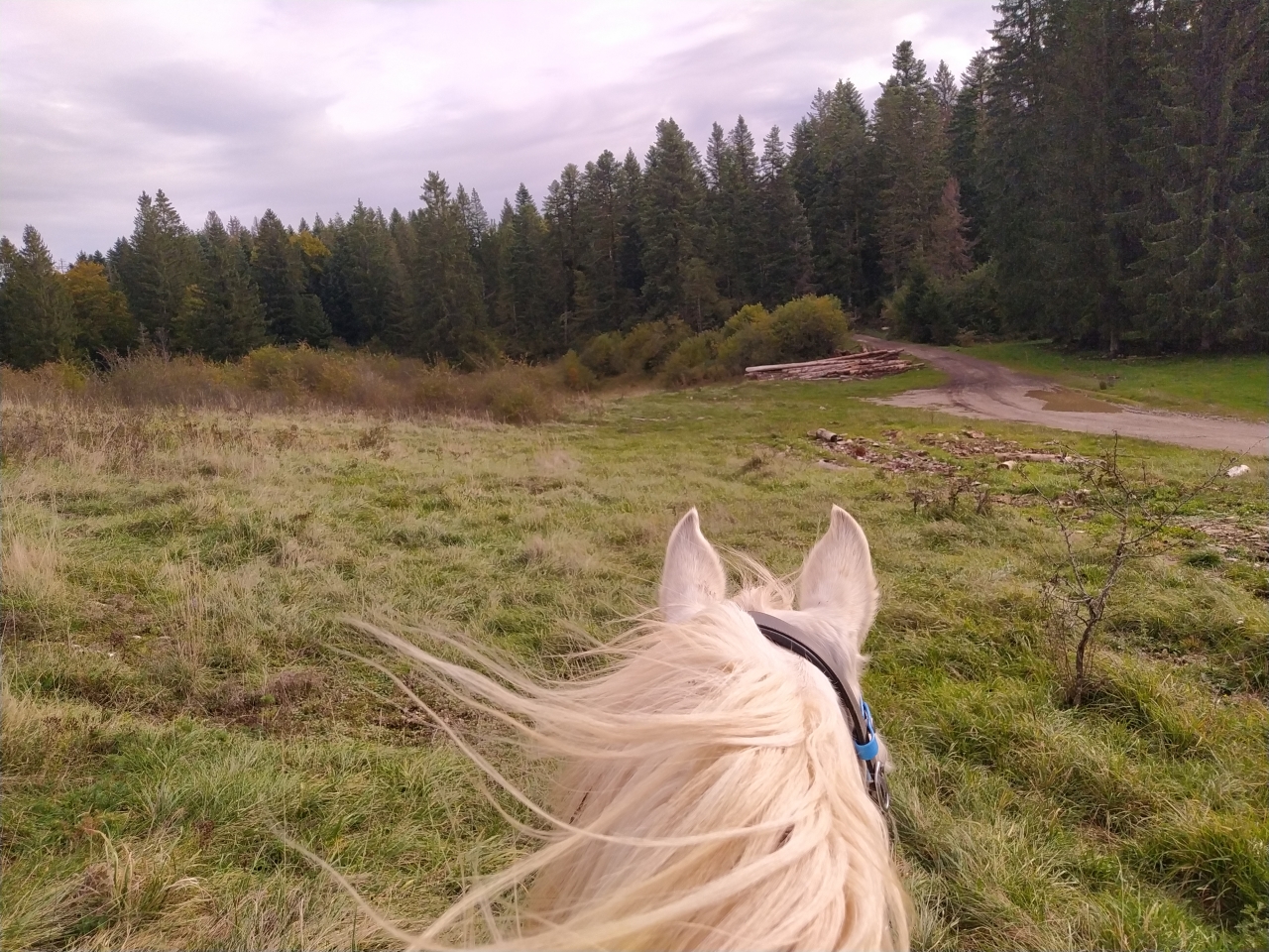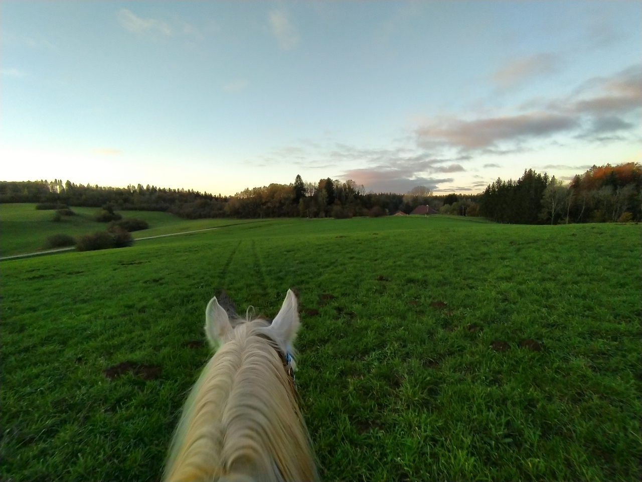 | Dire merci | du coup comme le proprio l'emmène directement chez lui, on part le soir meme et dimanche, balade à deux, euh à 4 ![]() ![]() le temps était top ! les juments aussi ![]() ![]() ![]() on rentre après une heure de douceur ![]() |