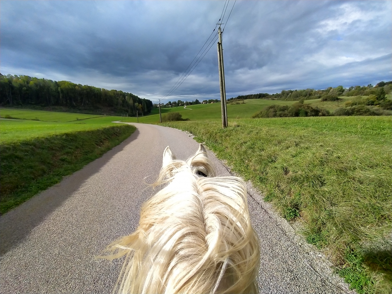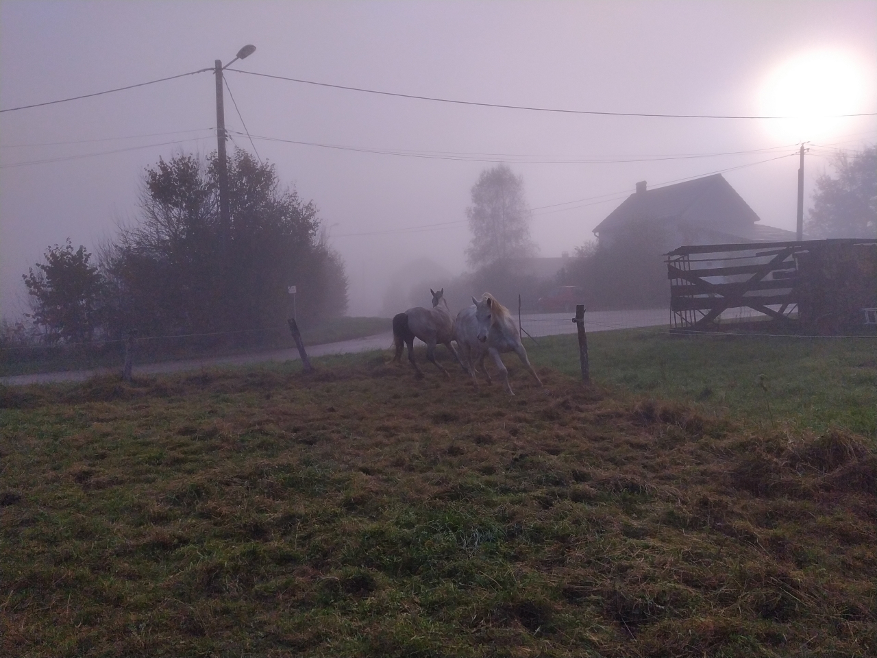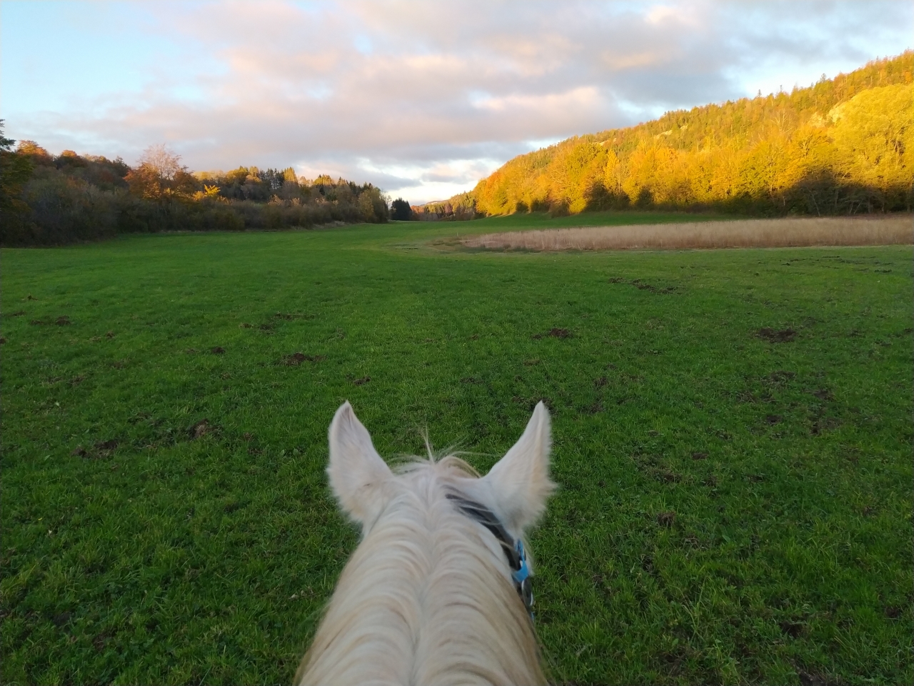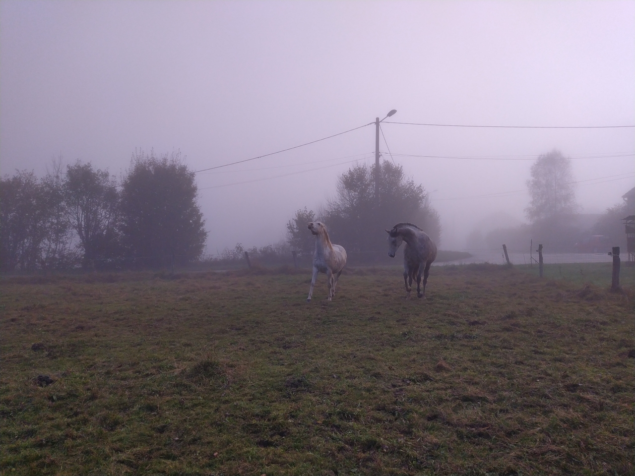 | Dire merci | du coup comme le proprio l'emmène directement chez lui, on part le soir meme et dimanche, balade à deux, euh à 4 ![]() ![]() le temps était top ! les juments aussi ![]() ![]() ![]() on rentre après une heure de douceur ![]() |