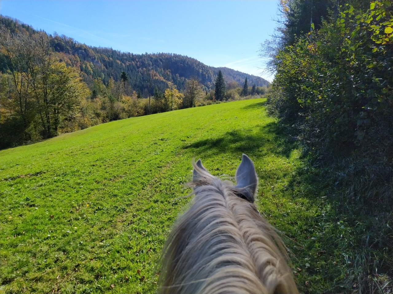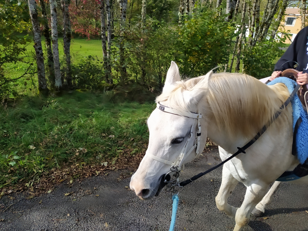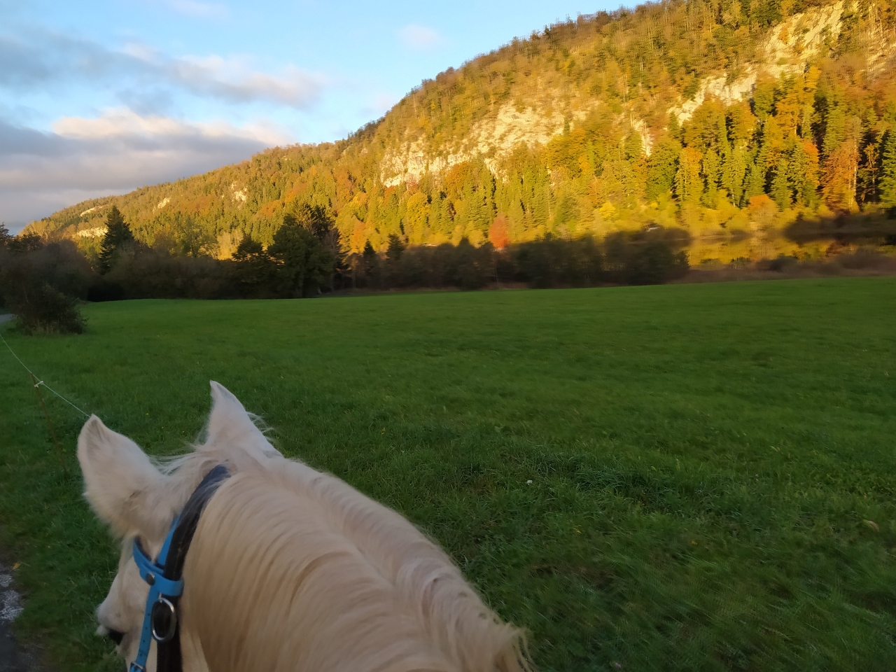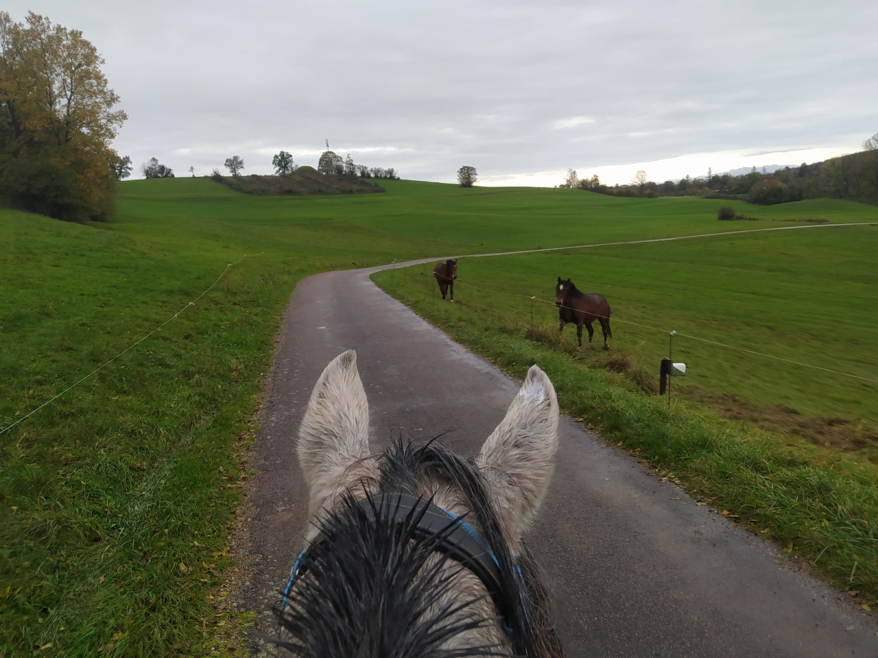 | Dire merci | du coup comme le proprio l'emmène directement chez lui, on part le soir meme et dimanche, balade à deux, euh à 4 ![]() ![]() le temps était top ! les juments aussi ![]() ![]() ![]() on rentre après une heure de douceur ![]() |