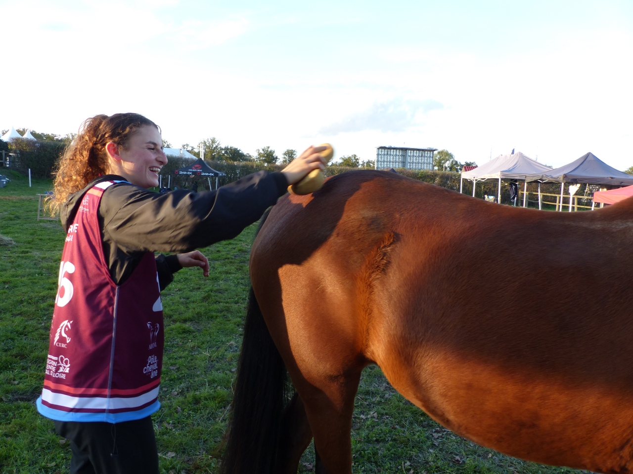 | Dire merci | la boucle se passe bien aussi la jument se met à bien boire, ouf la piste est meilleure que la première boucle, le train est bon ![]() et 2h après c'est l'arrivée une arrivée chaotique car elle se fait doubler par deux cavaliers qui se rendent compte qu'ils sont trop en avance et font demi tour devant la ligne d'arrivée ![]() ![]() on se dépeche car le temps de récupération compte sur la moyenne horaire avec ce nouveau réglement ![]() on groome ![]() |