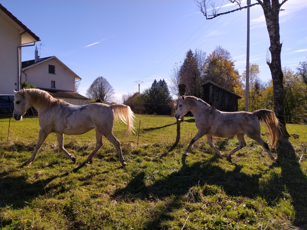 | Dire merci1 | Avant dernière page : injection d'immunothérapie pour Naska Dernière page : 1ere course de Qoumir 2006 Après avoir rencontré Iris qui me permit d'aller jusqu'en 160km en endurance...réalisation d'un rêve : une arabe...Quiara de la Loze que j'achète à ses 23 mois Nous apprenons beaucoup ensemble, elle me suit dans mes idées + ou - farfelues et me donne en retour sa confiance aveugle malgré son carafon de "poney arabe" mais à nous les rigolades, les grandes sorties, le trec et... l'endurance ! Juillet 2008, je vais voir une arabe russo-polonaise de 11ans, Nastassja de Pawi dite "Nati". Ce sera Elle, la nouvelle élue pour la réalisation d'un projet qui me tient à cœur : produire quelques poulains bons et beaux ! Elle nous offre un adorable poulain en 2010 : Nahym, qui partira rejoindre sa nouvelle famille en août 2011. Puis Nati s'offrira une jolie qualification en endurance sur 130km en avant de prendre sa retraite sportive. 2012 : Nati part en location poulinage et Djati naît en mars 2013, au sevrage de celle ci, fin septembre 2013, Nati rentre à la maison ! 2014 : Nati retourne à la saillie début mai pendant que Quiara reprend le chemin des courses après l'année précédente maudite où la perte de son bout de queue puis des soucis de selle nous ont gâché la saison... 2015 : Quiara se blesse au parc, on dit aurevoir à nos rêves de courses d'endurance et petite Naska arrive le 16 avril après pile 11 mois et 11j de gestation. 2016 : Nati retourne en contrat poulinage Quiara fait son retour en course en gagnant la 1ère course à laquelle elle participe avec Deydou39 : une 80vl fin mars puis fin juin elle doit être mise au repos, la saison de course est encore stoppée cette année pour nous ![]() 2017: Nati a pouliné d'une pouliche : Hadjira. Elle rentre en novembre à la maison et Quiara fait 130km seule au monde avec moi en course, oublié son accident qui failli lui couter son antérieur ! 2018 : Naska correspond tout à fait à ce que je voulais comme relève. Nati fait de la prom prom et Quiara après avoir gagné sa 1ère course de la saison qui devait nous ouvrir les portes de notre 160 se blesse et se fait une desmite... ![]() Fin 2018 : La boucle est bouclée, Nati retourne dans son élevage afin d'offrir la relève de sa lignée à son naisseur. mais en 2020 perd la vie à la naissance de Nasdrovia. Naska reprend tranquillement le chemin des sorties et Quiara va à la saillie .... Naska obtient sa première qualification en endurance sur 20km puis sur 40km. 2021 Naska se requalifie sur 40km puis 2 fois sur 60km & Qoumir (fils de Quiara et de Ofir al Hfifa) fait son arrivée parmi nous, un grand mâle gris timide et malicieux à souhait ![]() 2022 Naska commence l'année avec une cyatosmose larvaire mal traitée et diagnostiquée... on pense la perdre mais grâce à de précieux conseils venus du forum, elle remonte la pente et gagne en juillet sa première 80km (87km en réel) à notre grande surprise ! Qoumir part dans sa nouvelle famille en avril et Quiara est remise à la saillie mais elle ne prendra pas...En novembre, Naska obtiendra sa 2ème qualification sur 80km, une course technique où elle ne déméritera pas 2023 : la saison d'endu se prépare pour Naska et nouveau et dernier prétendant pour Quiara qui nous fait tourner encore en bourrique pour ne pas prendre... 2024 : après un début d'année sympa avec qq cso Quiara se fait une atteinte de la bride carpienne et du suspenseur en faisant la con au parc... elle reprend le boulot tranquillement mi aout après 5 mois de repos Naska continue les sorties après avoir été mise en pause par la fédé d'endurance suite à ses 3 éliminations consécutives pour boiterie, n'ayant rien nul part, on suspecte de fortes douleurs ovariennes qui la feraient boiter.. 2025 il aura fallu retenir 4 prétendants pour n'en avoir qu'un pour Quiara cette année, affaire à suivre, c'est la der des der... Naska se fait opérer en janvier d'un sarcoïde mal placé et reprend l'entrainement, on espère résoudre ses irrégularités d'allure par la suppression des chaleurs. Juillet 2025 : Naska m offre sa deuxième qualification sur 100km et enchaîne une immunothérapie pour une tumeur sous la paupière Quiara me fait à nouveau la joie d être pleine pour mi mai 2026 ❤️ Message édité le 30/09/25 à 20:13 Message édité le 18/11/25 à 14:53 |