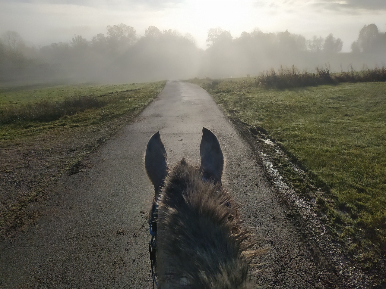 | Dire merci | J étais en repos vendredi et je me lève avec une belle rhinopharyngite, pas de surprise j en fais une belle par an, en général en fin d année au moment de "lâcher prise", et la clairement je me suis bien détendue après cette finale Shf avec Java. On dirait pas hein mais c est de la pression de valider des objectifs ![]() Donc bon, je regarde le temps peu engageant par la fenêtre et comme on le sait tous, rien ne vaut une sortie à cheval pour se dégager les narines 🤣 |
