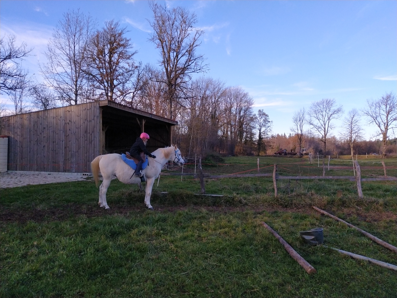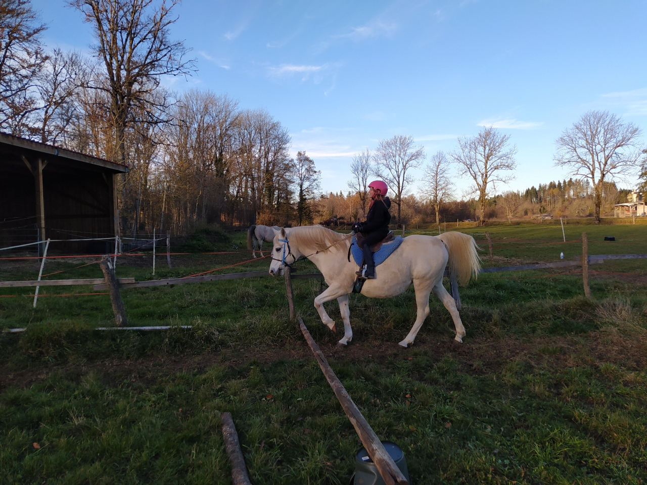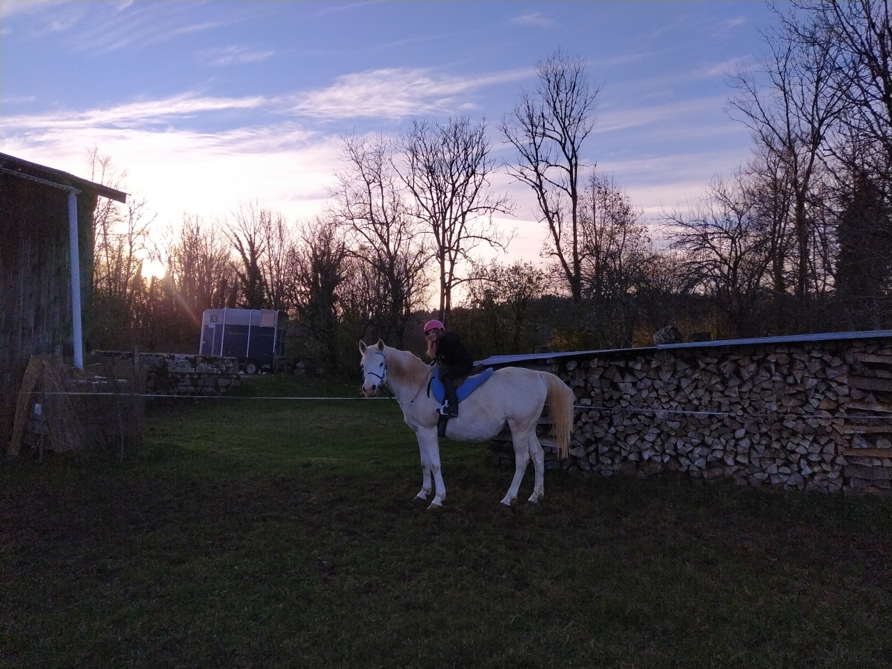 | Dire merci | Donc hier c était cours de poney pour de vrai Avec pansage comme dans les livres ![]() Puis hop, première fois en autonomie complète pour ma fille avec détente au pas pour commencer ![]() ![]() On travaille le trot enlevé ![]() Et on vérifie qu on a du frein ![]() |