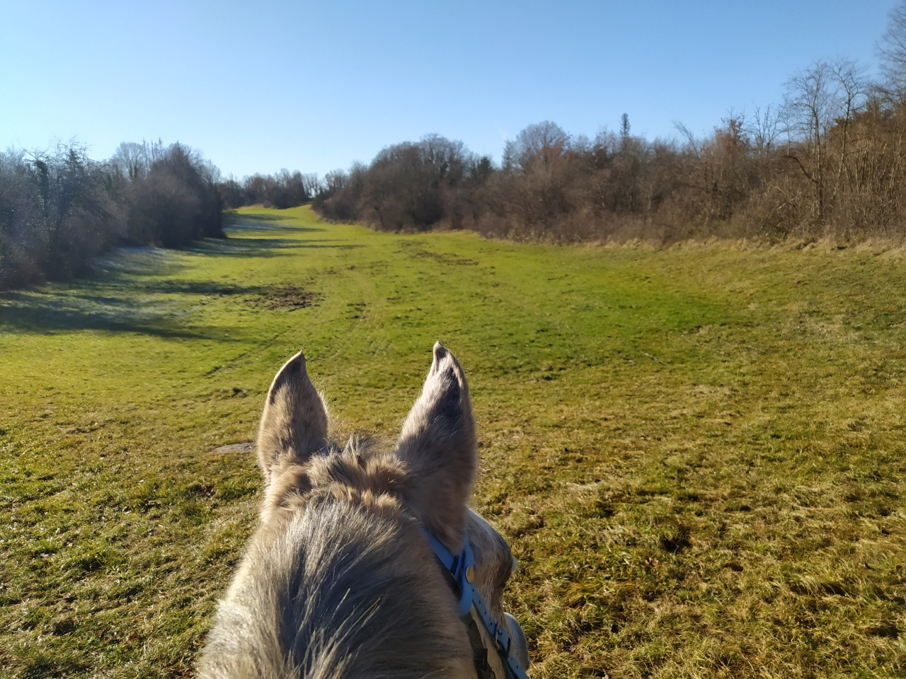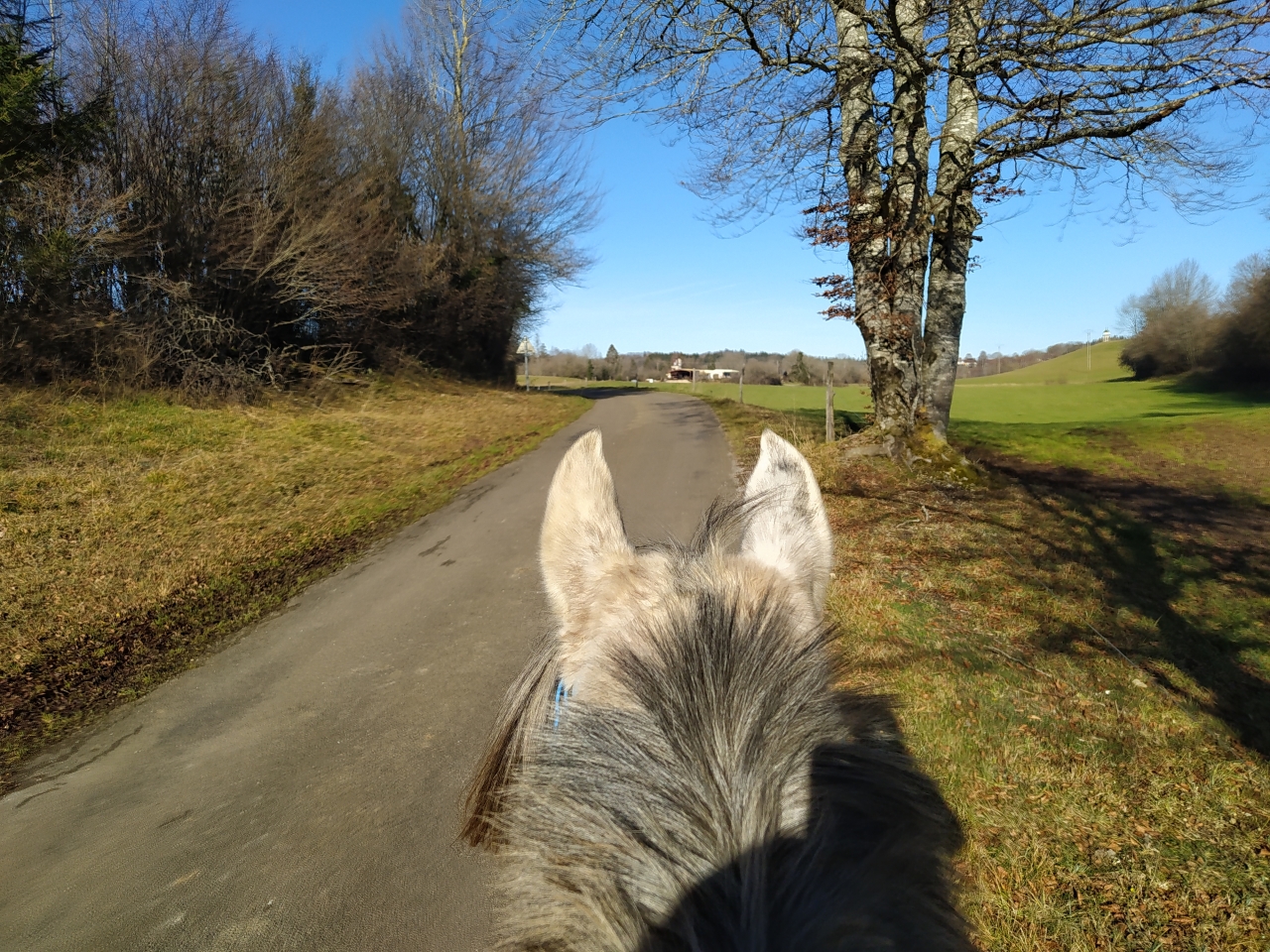 | Dire merci | alors là, j'avais la cravache dans la main gauche et le tel dans la main droite, autant dire que j'ai pas choisi le plus haut du tronc pour sauter en filmant mais c'était les derniers passages, car il a fallu que je me fache avant pour avoir un galop à droite... ![]() cravache que j'avais prise à la base car retrouvée dans ma sellerie, j'avais pensé l'utiliser dans mon espace carrière puis je suis partie en extérieur avec elle, accrochée au poignet, truc que je déteste... finalement elle m'aura un peu servie pour ces départs au galop Message édité le 13/11/24 à 22:16 |