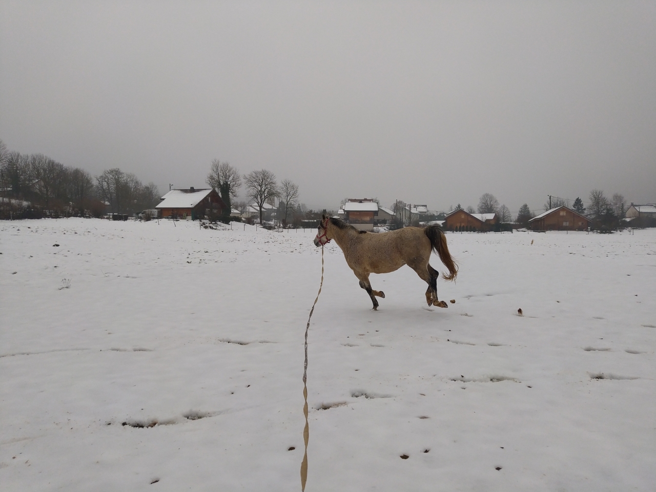 | Dire merci | J'aime bien la pouliche (avis très constructif, merci ) hormis qu'elle a bien l'air bas et long-jointée non ? Vraiment pas simple à dire sur photos, j'en conviens, mais ça m'interpelle, surtout niveau postérieur sur la dernière photo, mais aussi antérieur sur la première (je le redis bien, mais c'est une impression à prendre en compte avec ma vue de merde et la photo de loin en mouvement et pas au carré, donc à prendre avec des pincettes) Sinon, sacrée aventure le van ! Et bon courage pour ton gamin (et toi aussi d'ailleurs, pas marrant à gérer, la varicelle) |