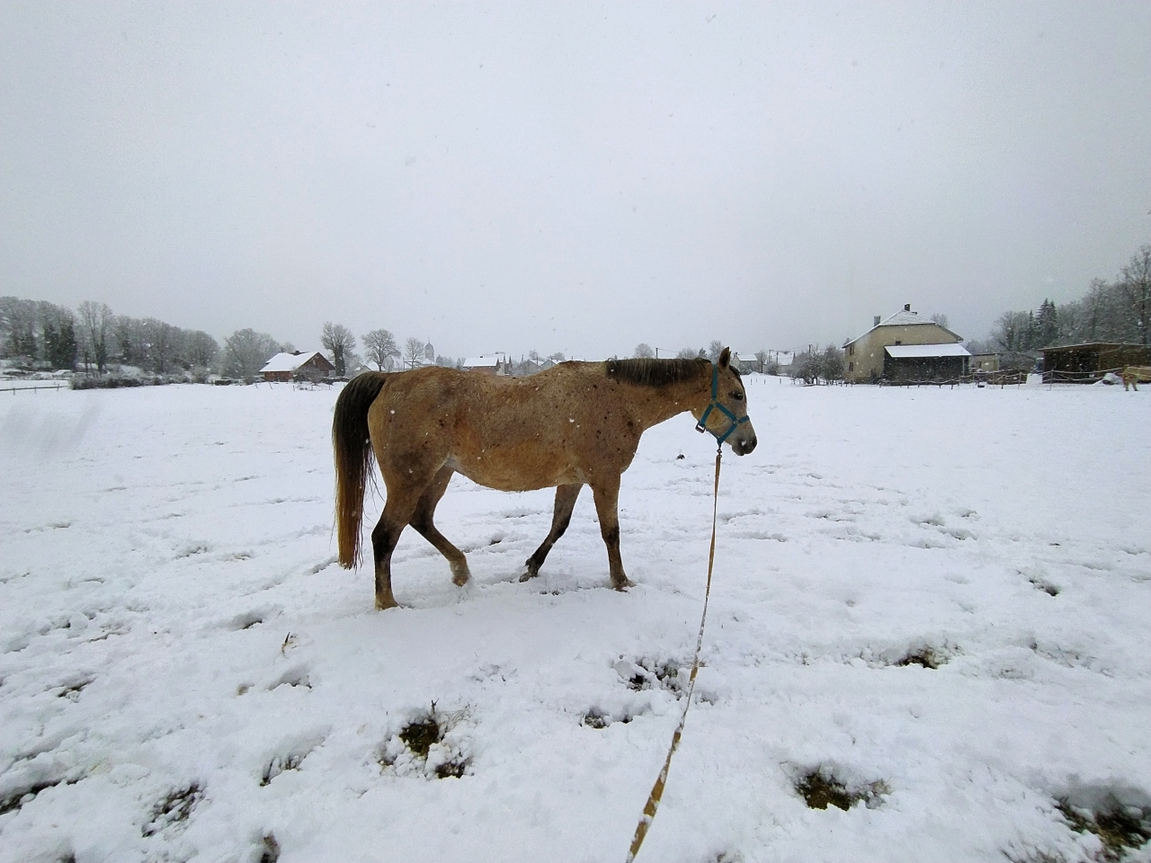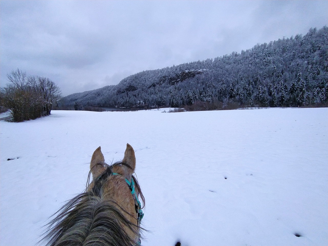 | Dire merci | aujourd'hui donc re sortie avec Naskouille je savais pas trop où aller, j'avais 3h30 devant moi mais je voulais pas me retrouver coincée par un arbre au sol et faire demi tour ![]() donc ben on y va et on avisera hein ![]() ![]() et hop on se fait assaillir par les deux kangols... plutot avenants pour une fois, donc ca passe crème, ouf ![]() et là j'arrive à 3 choix possibles... monter dans la neige faire du dénivelé et trouver des arbres en travers ou alors faire une boucle roulante autour du lac de Bonlieu... ![]() allez je prends le lac ![]() ![]() du coup comme je voulais travailler le galop, j'ai pris deux chemins où on voyait pas le lac ![]() puis on remonte sur les communaux ![]() la vue est toujours aussi chouette, c'est sauvage quoi ![]() ![]() et on rentre ![]() on revient par notre pré préféré ![]() elle est nickel en poids ![]() je les mets un coup dans la grande parcelle, il faut croire que 29km en 3h ca ne fatigue pas beaucoup ![]() ![]() |