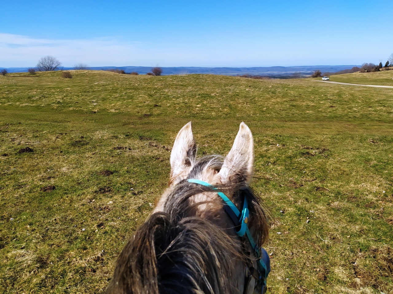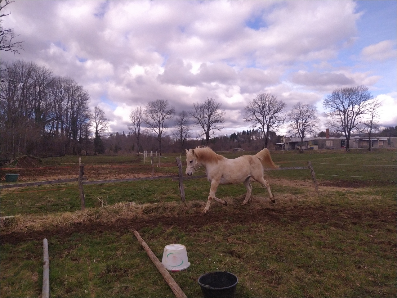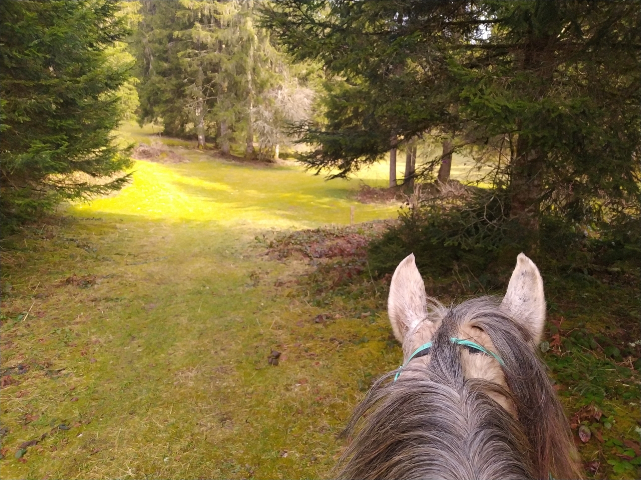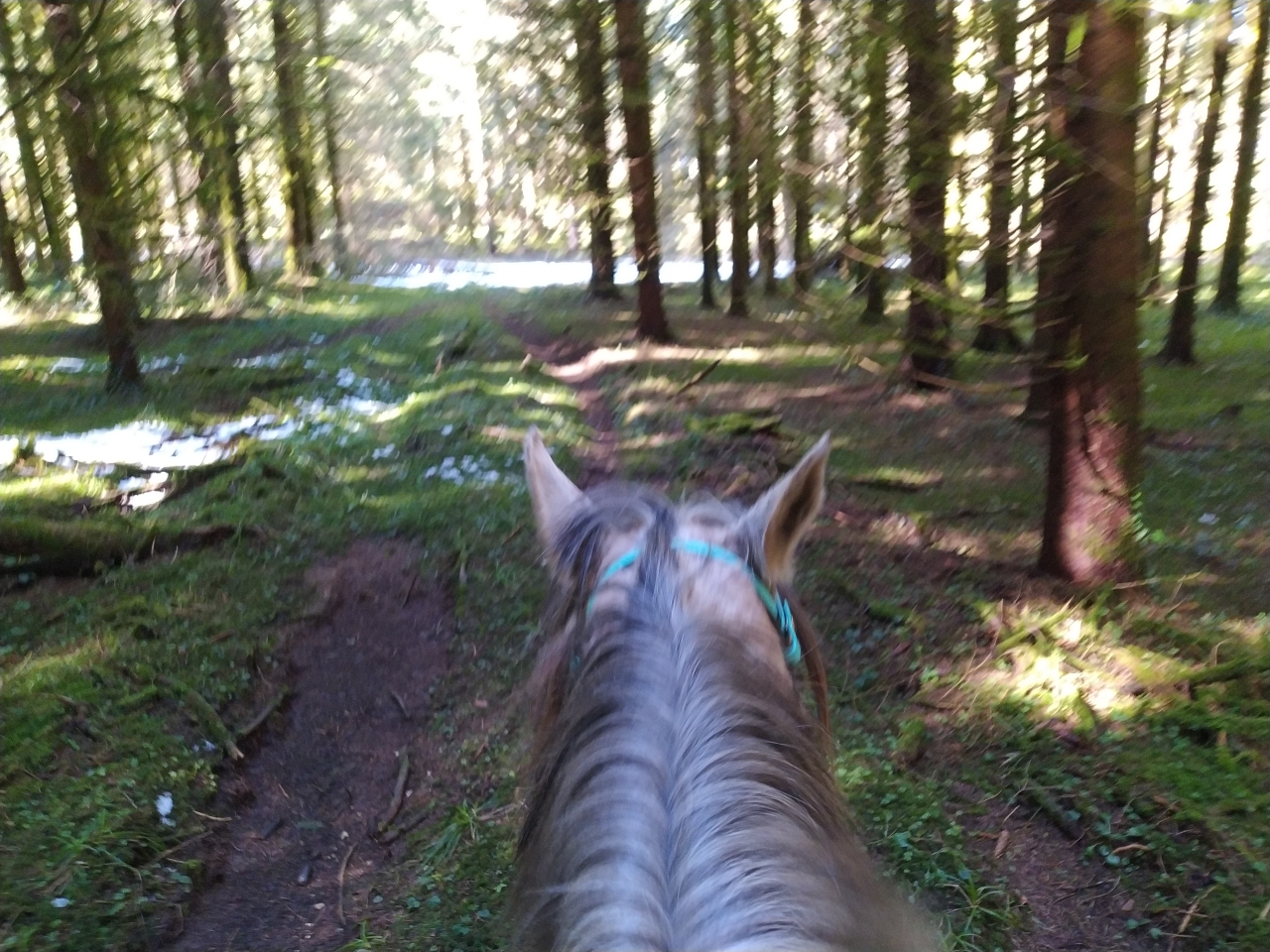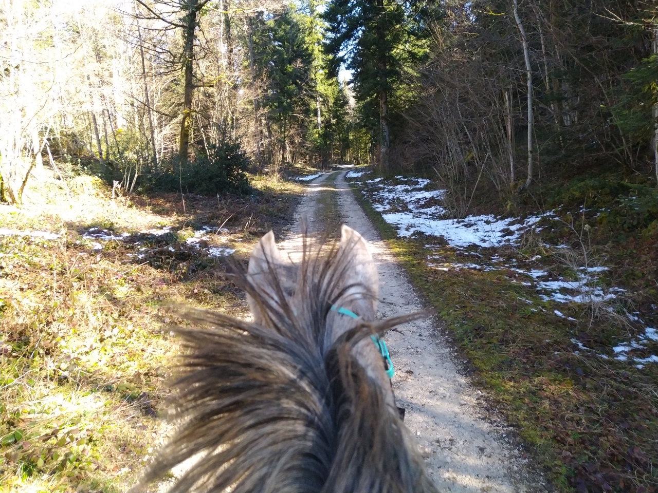 | Dire merci | on rentre donc par la route forestière alternant entre petit galop et trot ![]() ![]() ![]() on arrive à la maison après 25.5km et 2h50 de sortie, elle a bien bossé ![]() je douche les membres et petite récompense, je les mets dans le paddock en face de la maison ![]() ![]() ![]() ![]() |