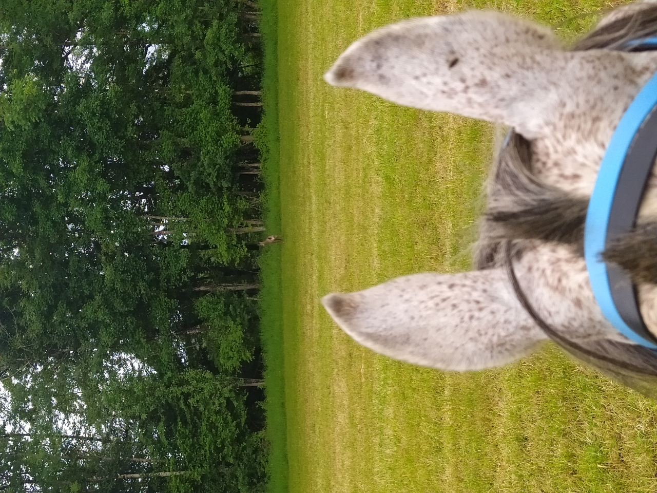 | Dire merci | on a fait un tour vendredi soir 14km en 1h30 jument top mais les fers commencent déjà à glisser ce soir je voulais faire ma séance de galop car cette semaine je ne vais pas pouvoir trop monter... entre aller chercher Quiara sur mon jour de repos, le rdv chez le dentiste sur mon tp et du coup la promesse à ma fille de l'emmener ensuite à la piscine avec sa copine... mon chéri qui part en week end chez des amis... bon déjà j'ai pas passé une journée de ouf et j'aurais du sentir que ca allait pas le faire... déjà ca lui a pas plu que j'arrive avec la gamelle sans lui donner puis de la préparer, on part dans les champs en face, je fais le tour au trot, je me prends un écart et une embardée mais nickel ca fait pile 1km, je me dis que zou, c'est parti pour 20km... mouais.. ben entre les lapins, les chevreuils puis les vaches qui déboulent j'ai bien cru aller au tas 5 fois donc j'ai descendu les renes au niveau du pessoa et bien que mes mains étaient posées j'ai eu deux trois lancés de tete pas très orthodoxes... donc finalement avec les recadrages on aura fait que 40mn mais on les aura bien finies... j'ai monté un peu la ration donc ca peut jouer sur le coté idiote |