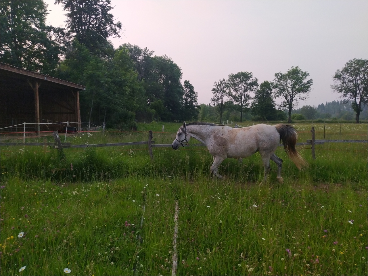 | Dire merci1 | Avant dernière page : injection d'immunothérapie pour Naska Dernière page : 1ere course de Qoumir 2006 Après avoir rencontré Iris qui me permit d'aller jusqu'en 160km en endurance...réalisation d'un rêve : une arabe...Quiara de la Loze que j'achète à ses 23 mois Nous apprenons beaucoup ensemble, elle me suit dans mes idées + ou - farfelues et me donne en retour sa confiance aveugle malgré son carafon de "poney arabe" mais à nous les rigolades, les grandes sorties, le trec et... l'endurance ! Juillet 2008, je vais voir une arabe russo-polonaise de 11ans, Nastassja de Pawi dite "Nati". Ce sera Elle, la nouvelle élue pour la réalisation d'un projet qui me tient à cœur : produire quelques poulains bons et beaux ! Elle nous offre un adorable poulain en 2010 : Nahym, qui partira rejoindre sa nouvelle famille en août 2011. Puis Nati s'offrira une jolie qualification en endurance sur 130km en avant de prendre sa retraite sportive. 2012 : Nati part en location poulinage et Djati naît en mars 2013, au sevrage de celle ci, fin septembre 2013, Nati rentre à la maison ! 2014 : Nati retourne à la saillie début mai pendant que Quiara reprend le chemin des courses après l'année précédente maudite où la perte de son bout de queue puis des soucis de selle nous ont gâché la saison... 2015 : Quiara se blesse au parc, on dit aurevoir à nos rêves de courses d'endurance et petite Naska arrive le 16 avril après pile 11 mois et 11j de gestation. 2016 : Nati retourne en contrat poulinage Quiara fait son retour en course en gagnant la 1ère course à laquelle elle participe avec Deydou39 : une 80vl fin mars puis fin juin elle doit être mise au repos, la saison de course est encore stoppée cette année pour nous ![]() 2017: Nati a pouliné d'une pouliche : Hadjira. Elle rentre en novembre à la maison et Quiara fait 130km seule au monde avec moi en course, oublié son accident qui failli lui couter son antérieur ! 2018 : Naska correspond tout à fait à ce que je voulais comme relève. Nati fait de la prom prom et Quiara après avoir gagné sa 1ère course de la saison qui devait nous ouvrir les portes de notre 160 se blesse et se fait une desmite... ![]() Fin 2018 : La boucle est bouclée, Nati retourne dans son élevage afin d'offrir la relève de sa lignée à son naisseur. mais en 2020 perd la vie à la naissance de Nasdrovia. Naska reprend tranquillement le chemin des sorties et Quiara va à la saillie .... Naska obtient sa première qualification en endurance sur 20km puis sur 40km. 2021 Naska se requalifie sur 40km puis 2 fois sur 60km & Qoumir (fils de Quiara et de Ofir al Hfifa) fait son arrivée parmi nous, un grand mâle gris timide et malicieux à souhait ![]() 2022 Naska commence l'année avec une cyatosmose larvaire mal traitée et diagnostiquée... on pense la perdre mais grâce à de précieux conseils venus du forum, elle remonte la pente et gagne en juillet sa première 80km (87km en réel) à notre grande surprise ! Qoumir part dans sa nouvelle famille en avril et Quiara est remise à la saillie mais elle ne prendra pas...En novembre, Naska obtiendra sa 2ème qualification sur 80km, une course technique où elle ne déméritera pas 2023 : la saison d'endu se prépare pour Naska et nouveau et dernier prétendant pour Quiara qui nous fait tourner encore en bourrique pour ne pas prendre... 2024 : après un début d'année sympa avec qq cso Quiara se fait une atteinte de la bride carpienne et du suspenseur en faisant la con au parc... elle reprend le boulot tranquillement mi aout après 5 mois de repos Naska continue les sorties après avoir été mise en pause par la fédé d'endurance suite à ses 3 éliminations consécutives pour boiterie, n'ayant rien nul part, on suspecte de fortes douleurs ovariennes qui la feraient boiter.. 2025 il aura fallu retenir 4 prétendants pour n'en avoir qu'un pour Quiara cette année, affaire à suivre, c'est la der des der... Naska se fait opérer en janvier d'un sarcoïde mal placé et reprend l'entrainement, on espère résoudre ses irrégularités d'allure par la suppression des chaleurs. Juillet 2025 : Naska m offre sa deuxième qualification sur 100km et enchaîne une immunothérapie pour une tumeur sous la paupière Quiara me fait à nouveau la joie d être pleine pour mi mai 2026 ❤️ Message édité le 30/09/25 à 20:13 Message édité le 18/11/25 à 14:53 |