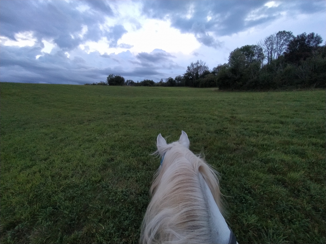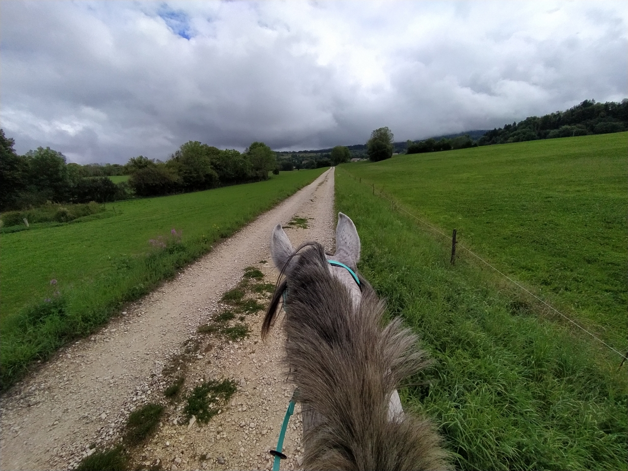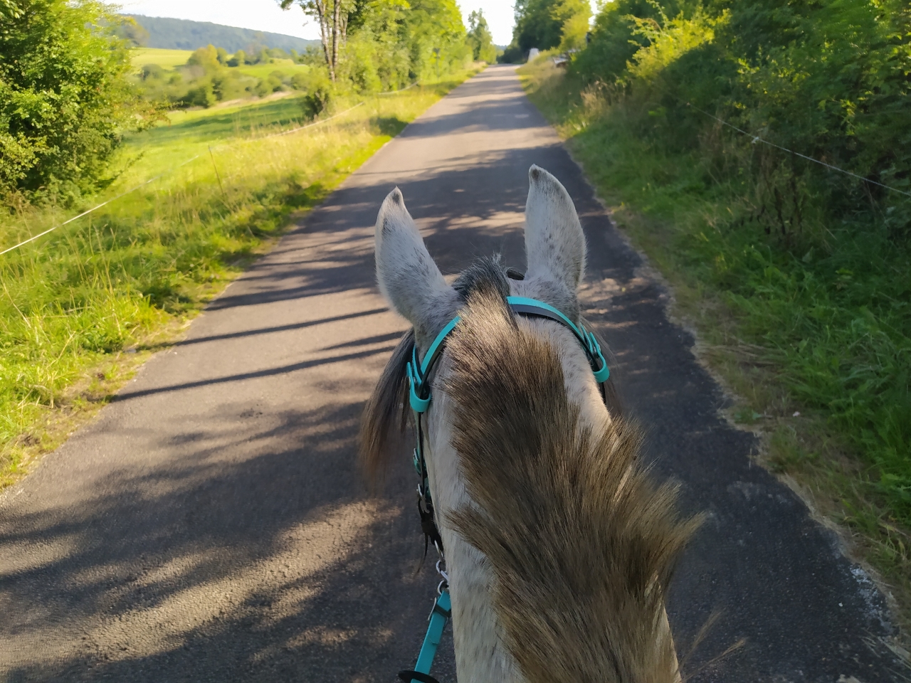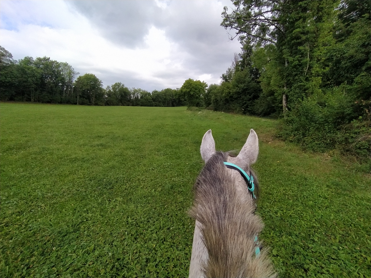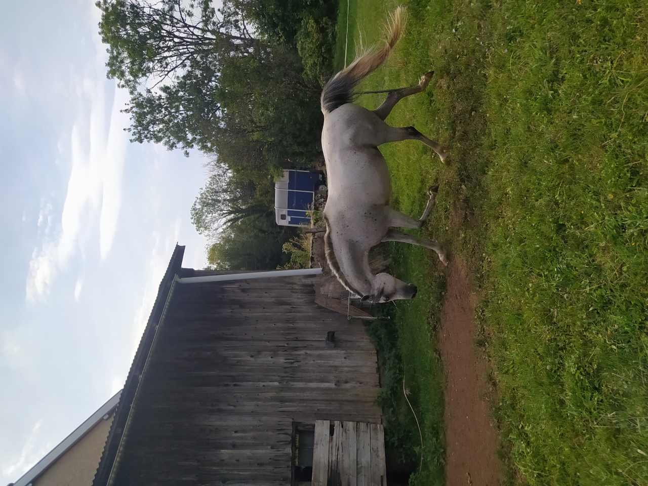 | Dire merci | pour étayer un peu ces images je trouve Naska vraiment bien dans son attitude, son comportement... je monte en prenant un peu plus contact avec la bouche et elle se tend d'elle meme, attentive, pas d'écarts à la mord moi le noeud, on est vraiment ensemble, c'est vraiment une étape pour nous je trouve pour son "bouton" à vif, je peux remercier les mouches. Je mets depuis 3j de la teinture mère de thuyas et je la complémente en magnésium. Mon véto est encore en vacances. Je lui ai envoyé des photos, j'attends son retour pour voir si on refait une injection ou pas sur l'oeil à tumeur sous paupière. Honnetement j'espère que non, quand je vois comme ca dégonfle seulement au bout de 24j ... et je ne suis pas très optimiste sur l'effet en plus ... à part sur le fait d'avoir bien troué mes finances |