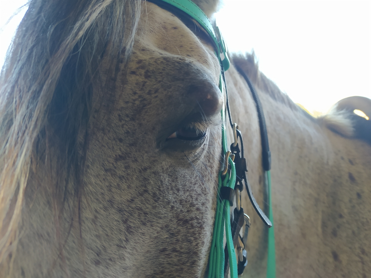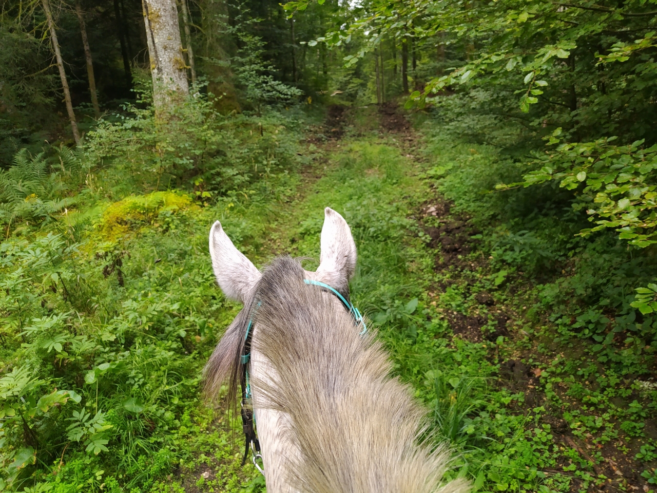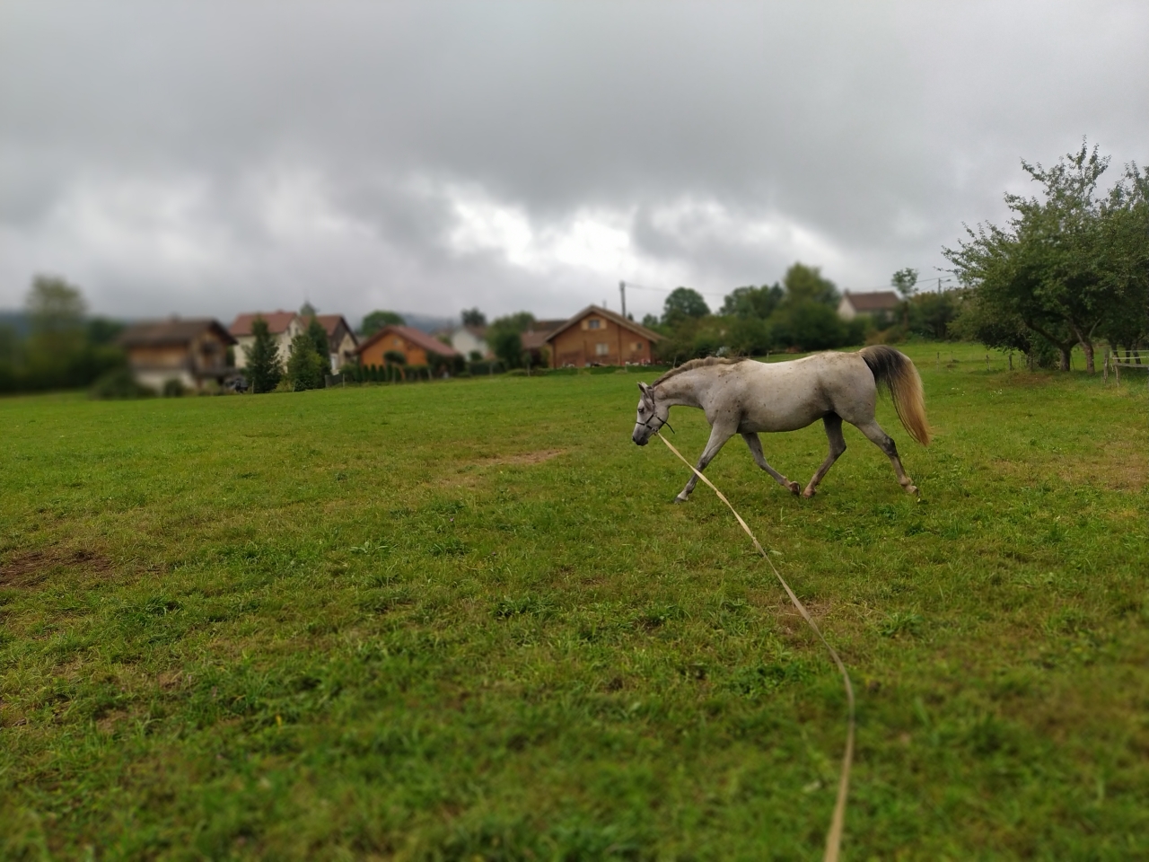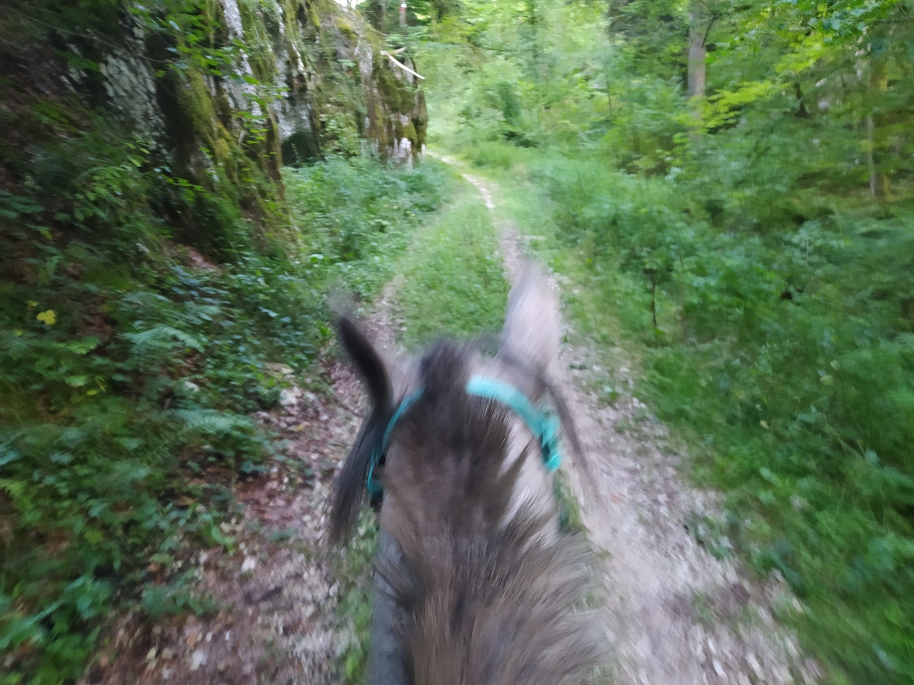 | Dire merci | pour étayer un peu ces images je trouve Naska vraiment bien dans son attitude, son comportement... je monte en prenant un peu plus contact avec la bouche et elle se tend d'elle meme, attentive, pas d'écarts à la mord moi le noeud, on est vraiment ensemble, c'est vraiment une étape pour nous je trouve pour son "bouton" à vif, je peux remercier les mouches. Je mets depuis 3j de la teinture mère de thuyas et je la complémente en magnésium. Mon véto est encore en vacances. Je lui ai envoyé des photos, j'attends son retour pour voir si on refait une injection ou pas sur l'oeil à tumeur sous paupière. Honnetement j'espère que non, quand je vois comme ca dégonfle seulement au bout de 24j ... et je ne suis pas très optimiste sur l'effet en plus ... à part sur le fait d'avoir bien troué mes finances |