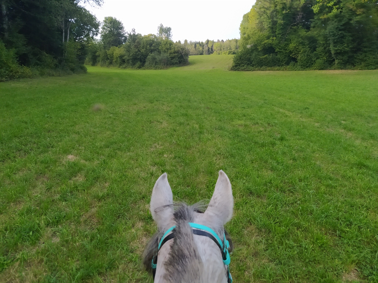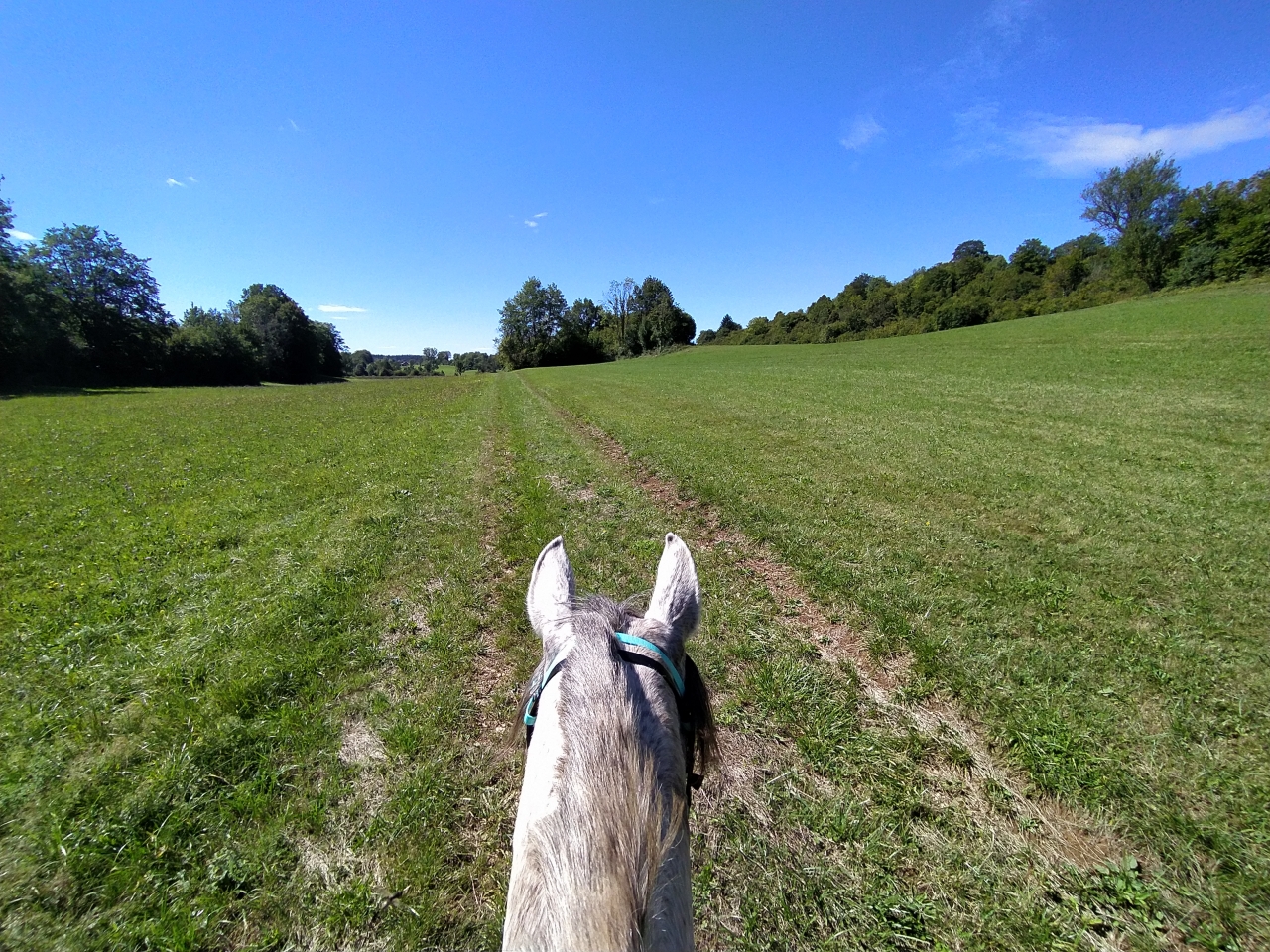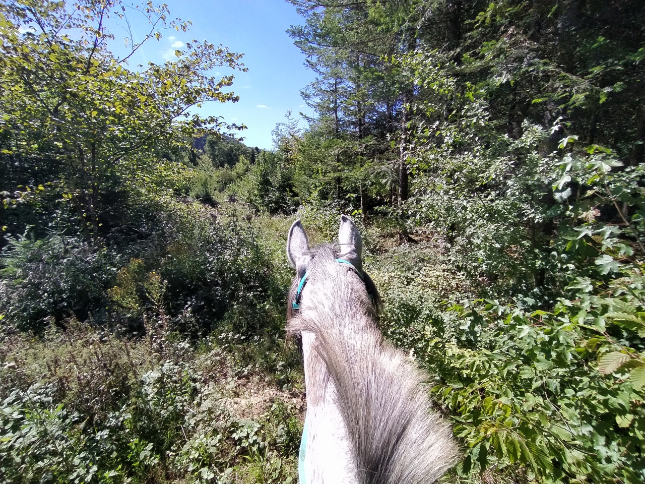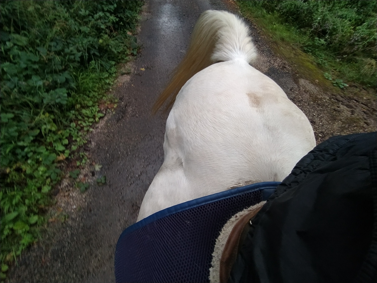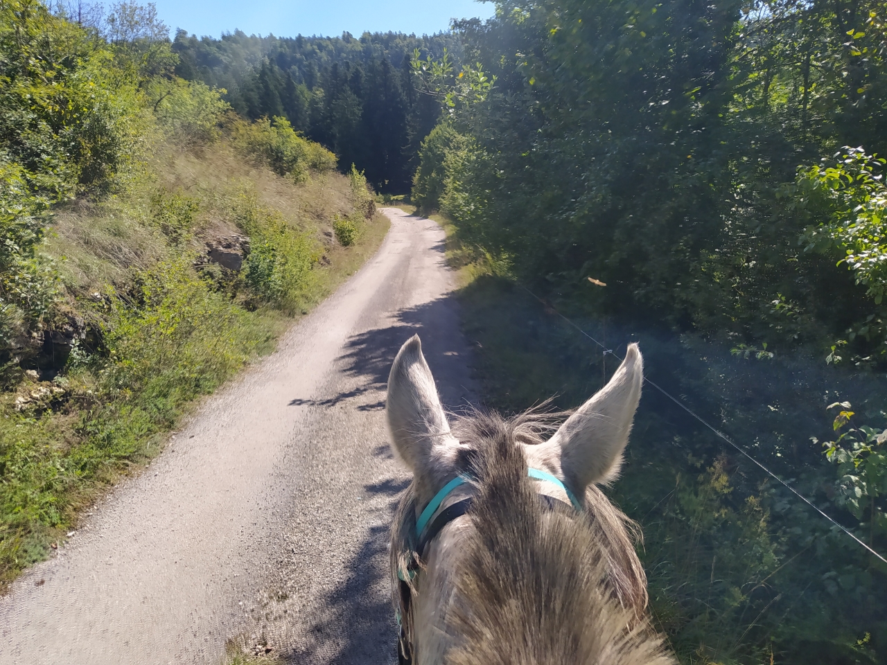 | Dire merci | pour étayer un peu ces images je trouve Naska vraiment bien dans son attitude, son comportement... je monte en prenant un peu plus contact avec la bouche et elle se tend d'elle meme, attentive, pas d'écarts à la mord moi le noeud, on est vraiment ensemble, c'est vraiment une étape pour nous je trouve pour son "bouton" à vif, je peux remercier les mouches. Je mets depuis 3j de la teinture mère de thuyas et je la complémente en magnésium. Mon véto est encore en vacances. Je lui ai envoyé des photos, j'attends son retour pour voir si on refait une injection ou pas sur l'oeil à tumeur sous paupière. Honnetement j'espère que non, quand je vois comme ca dégonfle seulement au bout de 24j ... et je ne suis pas très optimiste sur l'effet en plus ... à part sur le fait d'avoir bien troué mes finances |