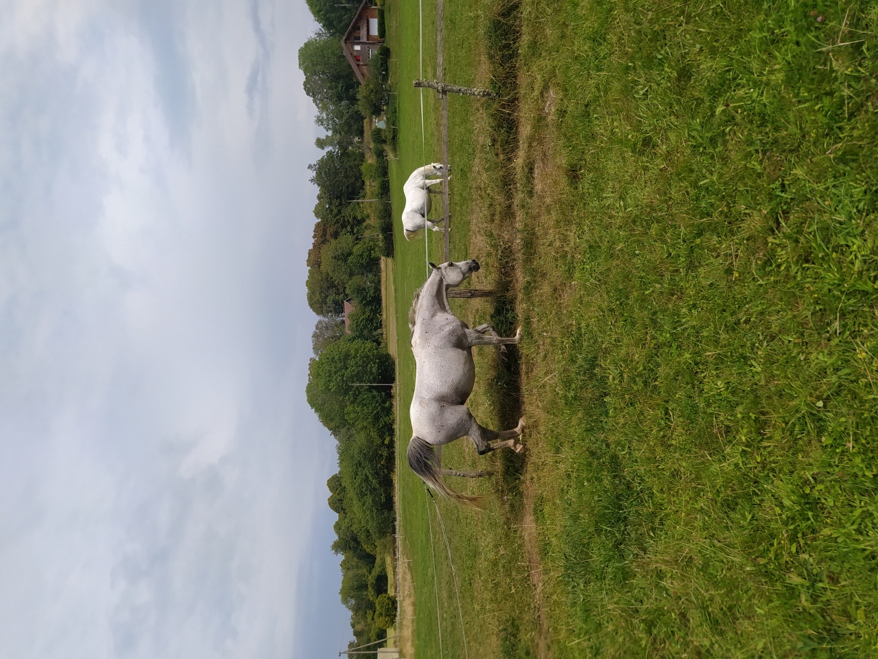 | Dire merci1 | Avant dernière page : injection d'immunothérapie pour Naska Dernière page : 1ere course de Qoumir 2006 Après avoir rencontré Iris qui me permit d'aller jusqu'en 160km en endurance...réalisation d'un rêve : une arabe...Quiara de la Loze que j'achète à ses 23 mois Nous apprenons beaucoup ensemble, elle me suit dans mes idées + ou - farfelues et me donne en retour sa confiance aveugle malgré son carafon de "poney arabe" mais à nous les rigolades, les grandes sorties, le trec et... l'endurance ! Juillet 2008, je vais voir une arabe russo-polonaise de 11ans, Nastassja de Pawi dite "Nati". Ce sera Elle, la nouvelle élue pour la réalisation d'un projet qui me tient à cœur : produire quelques poulains bons et beaux ! Elle nous offre un adorable poulain en 2010 : Nahym, qui partira rejoindre sa nouvelle famille en août 2011. Puis Nati s'offrira une jolie qualification en endurance sur 130km en avant de prendre sa retraite sportive. 2012 : Nati part en location poulinage et Djati naît en mars 2013, au sevrage de celle ci, fin septembre 2013, Nati rentre à la maison ! 2014 : Nati retourne à la saillie début mai pendant que Quiara reprend le chemin des courses après l'année précédente maudite où la perte de son bout de queue puis des soucis de selle nous ont gâché la saison... 2015 : Quiara se blesse au parc, on dit aurevoir à nos rêves de courses d'endurance et petite Naska arrive le 16 avril après pile 11 mois et 11j de gestation. 2016 : Nati retourne en contrat poulinage Quiara fait son retour en course en gagnant la 1ère course à laquelle elle participe avec Deydou39 : une 80vl fin mars puis fin juin elle doit être mise au repos, la saison de course est encore stoppée cette année pour nous ![]() 2017: Nati a pouliné d'une pouliche : Hadjira. Elle rentre en novembre à la maison et Quiara fait 130km seule au monde avec moi en course, oublié son accident qui failli lui couter son antérieur ! 2018 : Naska correspond tout à fait à ce que je voulais comme relève. Nati fait de la prom prom et Quiara après avoir gagné sa 1ère course de la saison qui devait nous ouvrir les portes de notre 160 se blesse et se fait une desmite... ![]() Fin 2018 : La boucle est bouclée, Nati retourne dans son élevage afin d'offrir la relève de sa lignée à son naisseur. mais en 2020 perd la vie à la naissance de Nasdrovia. Naska reprend tranquillement le chemin des sorties et Quiara va à la saillie .... Naska obtient sa première qualification en endurance sur 20km puis sur 40km. 2021 Naska se requalifie sur 40km puis 2 fois sur 60km & Qoumir (fils de Quiara et de Ofir al Hfifa) fait son arrivée parmi nous, un grand mâle gris timide et malicieux à souhait ![]() 2022 Naska commence l'année avec une cyatosmose larvaire mal traitée et diagnostiquée... on pense la perdre mais grâce à de précieux conseils venus du forum, elle remonte la pente et gagne en juillet sa première 80km (87km en réel) à notre grande surprise ! Qoumir part dans sa nouvelle famille en avril et Quiara est remise à la saillie mais elle ne prendra pas...En novembre, Naska obtiendra sa 2ème qualification sur 80km, une course technique où elle ne déméritera pas 2023 : la saison d'endu se prépare pour Naska et nouveau et dernier prétendant pour Quiara qui nous fait tourner encore en bourrique pour ne pas prendre... 2024 : après un début d'année sympa avec qq cso Quiara se fait une atteinte de la bride carpienne et du suspenseur en faisant la con au parc... elle reprend le boulot tranquillement mi aout après 5 mois de repos Naska continue les sorties après avoir été mise en pause par la fédé d'endurance suite à ses 3 éliminations consécutives pour boiterie, n'ayant rien nul part, on suspecte de fortes douleurs ovariennes qui la feraient boiter.. 2025 il aura fallu retenir 4 prétendants pour n'en avoir qu'un pour Quiara cette année, affaire à suivre, c'est la der des der... Naska se fait opérer en janvier d'un sarcoïde mal placé et reprend l'entrainement, on espère résoudre ses irrégularités d'allure par la suppression des chaleurs. Juillet 2025 : Naska m offre sa deuxième qualification sur 100km et enchaîne une immunothérapie pour une tumeur sous la paupière Quiara me fait à nouveau la joie d être pleine pour mi mai 2026 ❤️ Message édité le 30/09/25 à 20:13 Message édité le 18/11/25 à 14:53 |