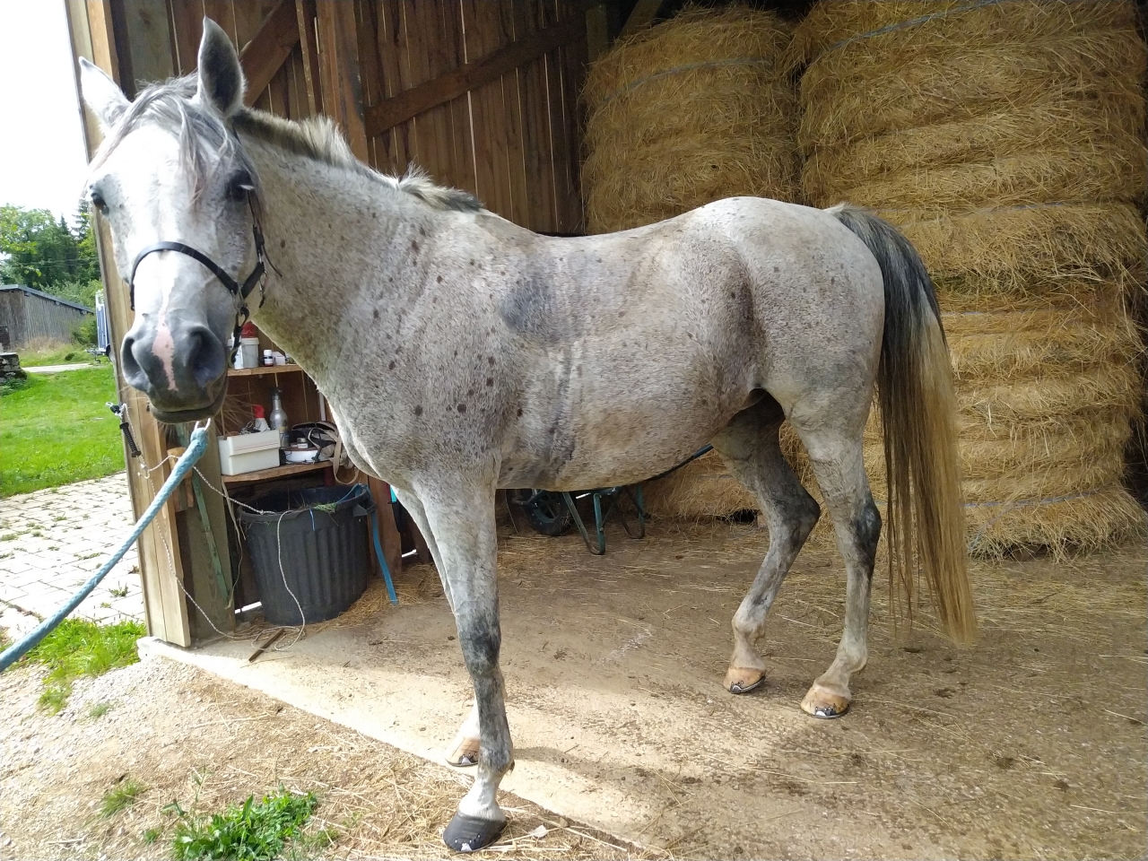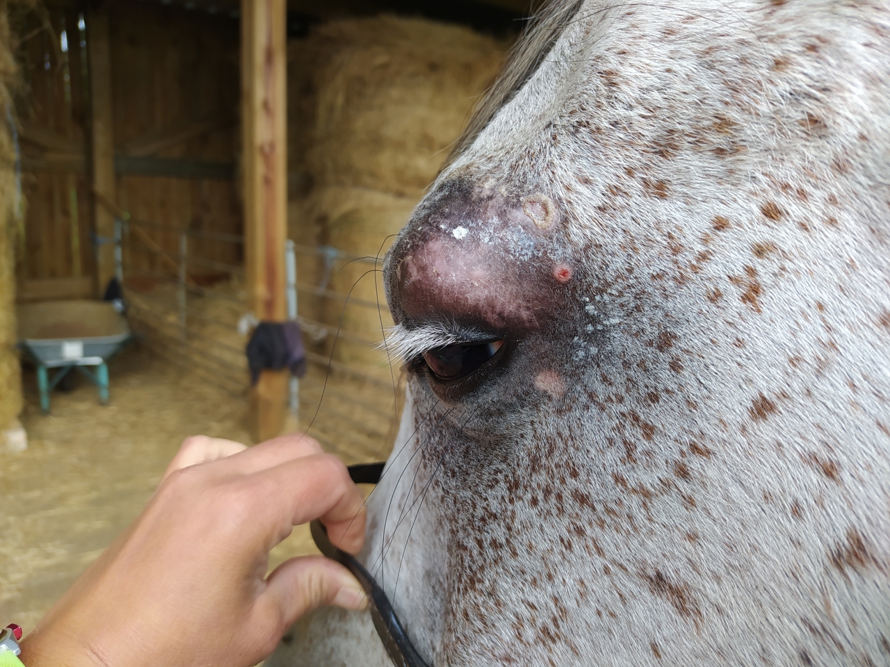 | Dire merci | Les gris, ce sont les mélanomes qui sont plus fréquents, et en vrai je n'ai eu qu'un cas où c'était cata, type vidéo choc d'Equitom, sinon RAS. Les sarcoïdes, c'est une autre chanson selon où c'est placé. Le pire cas que j'ai vu, c'était sur un alezan, la joue complètement bouffée. Je en pense pas qu'il y ait prévalence de robe quant aux sarcoïdes. Par contre, il y en aurait plus chez les arabes, il me semble. Le cheval que j'ai connu qui avait ça était un sbs (moitié AA, l'autre moitié PS/SF) |