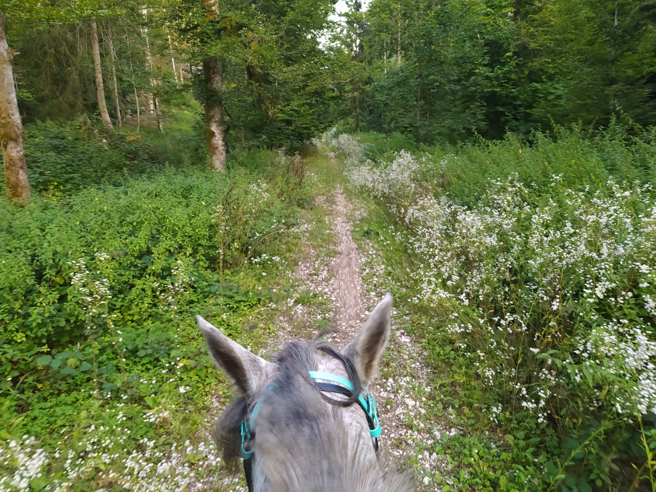 | Dire merci | Et hier sortie 21km/3h ![]() ![]() ![]() ![]() ![]() ![]() ![]() ![]() Parties a 17h30, j étais contente d avoir pris une petite laine pour le retour ![]() On a fait beaucoup de pas, quelques longueurs de trot et un peu de galop à chaque main. Je l ai trouvée appliquée et je n ai pas vu le temps passer |