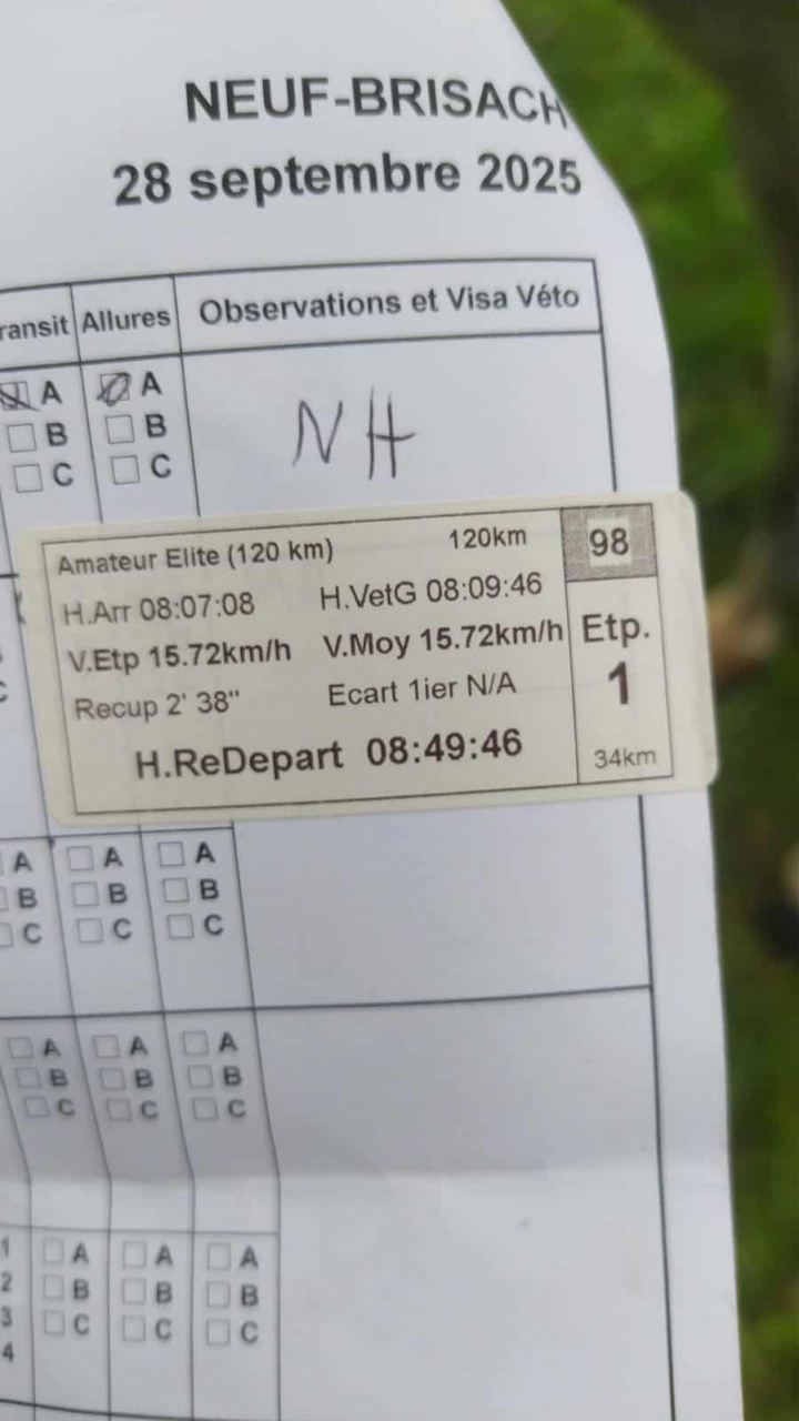 | Dire merci | Naska étant descendue du van super cool et pas du tout stressée par l'ambiance du CE avec plein de gamins et de poneys partout, on la laisse sereinement dans un des paddocks qu'on nous avait indiqué après l'avoir marchée une bonne heure et on installe notre grooming au pied des remparts de Neuf Brisach, en Alsace ![]() ![]() et là je recois un message me demandant l'autorisation de changer Naska de place car elle n'est pas au bon endroit, euh... faites donc ![]() puis on passe prendre les clefs de notre chambre d'hotel ![]() On revient près de Naska qui tire un peu la tronche car elle a été mise dans un paddock avec pas grand chose à grailler lol ![]() on la sort de là, on la fait propre, on fait une photo de la team du we : ![]() ![]() ![]() on a meme droit à un spectacle de Montgolfières ![]() et enfin c'est le controle véto initial, elle se fait remarquer par son flegme, la véto recheke son oeil, les constantes sont bonnes, elle est à 33 de fc ![]() elle trotte bien c'est validé, on peut déjà prendre le départ ![]() Départ qui sera à 6h dimanche avec les 100km finalement mais comme la propriétaire des chevaux qui sont engagés sur notre épreuve craint l'hystérie de sa jument sur un départ groupé, on partira donc 5mn après les 100km ![]() on mange ![]() puis on rentre à l'hotel où je tournerai dans mon lit jusqu'à minuit et à 3h bim j'attends que mon réveil sonne, ce qu'il fera 2h plus tard ![]() Message édité le 30/09/25 à 21:17 |