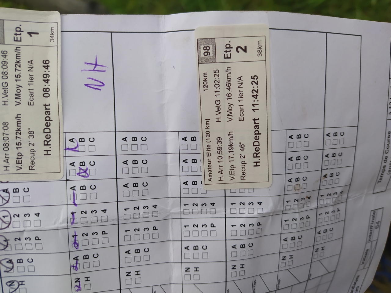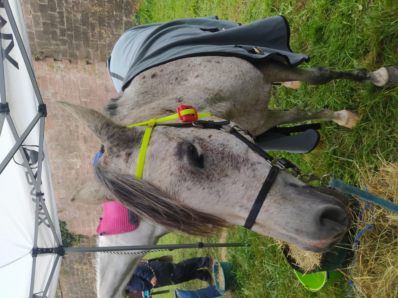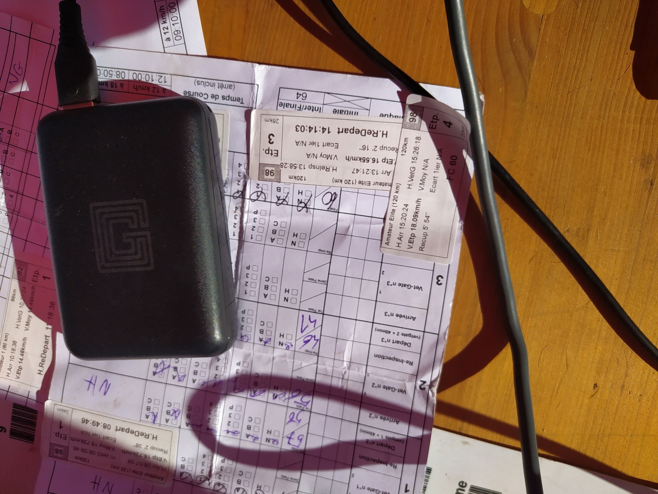 | Dire merci1 | Le boîtier c est le transpondeur pour avoir le chronomètrage semi automatique On passe sous des portiques au départ/arrivée/entrées de contrôle véto Contrôle véto au départ puis à l arrivée de chaque boucle (ici 4 : 34/38/28/20) sauf un autre 10mn avant de repartir sur la dernière boucle. Départ 6h/Arrivée 15h20 16,7 de moyenne, le poney est moins mou qu au prime abord 😂 |