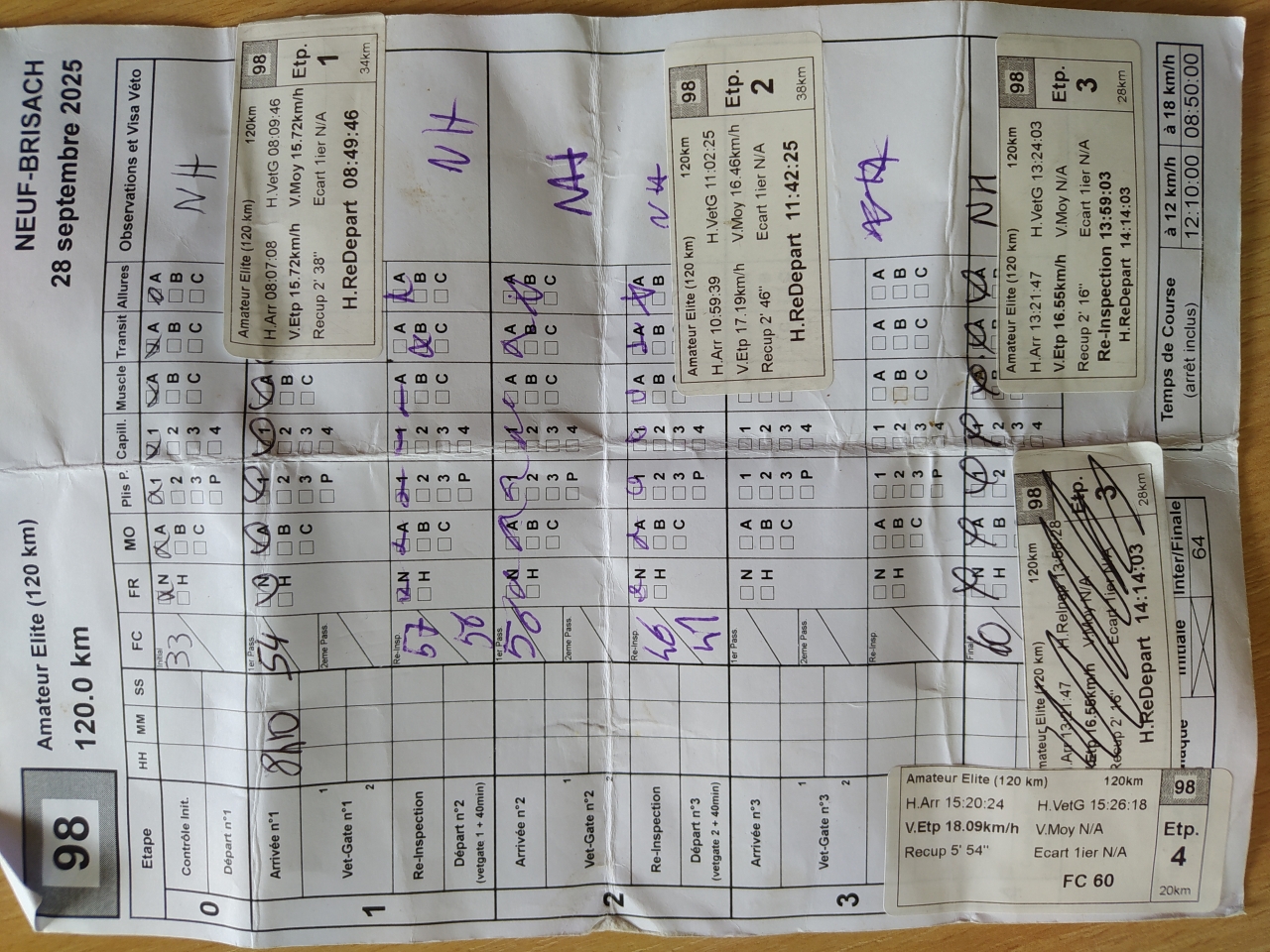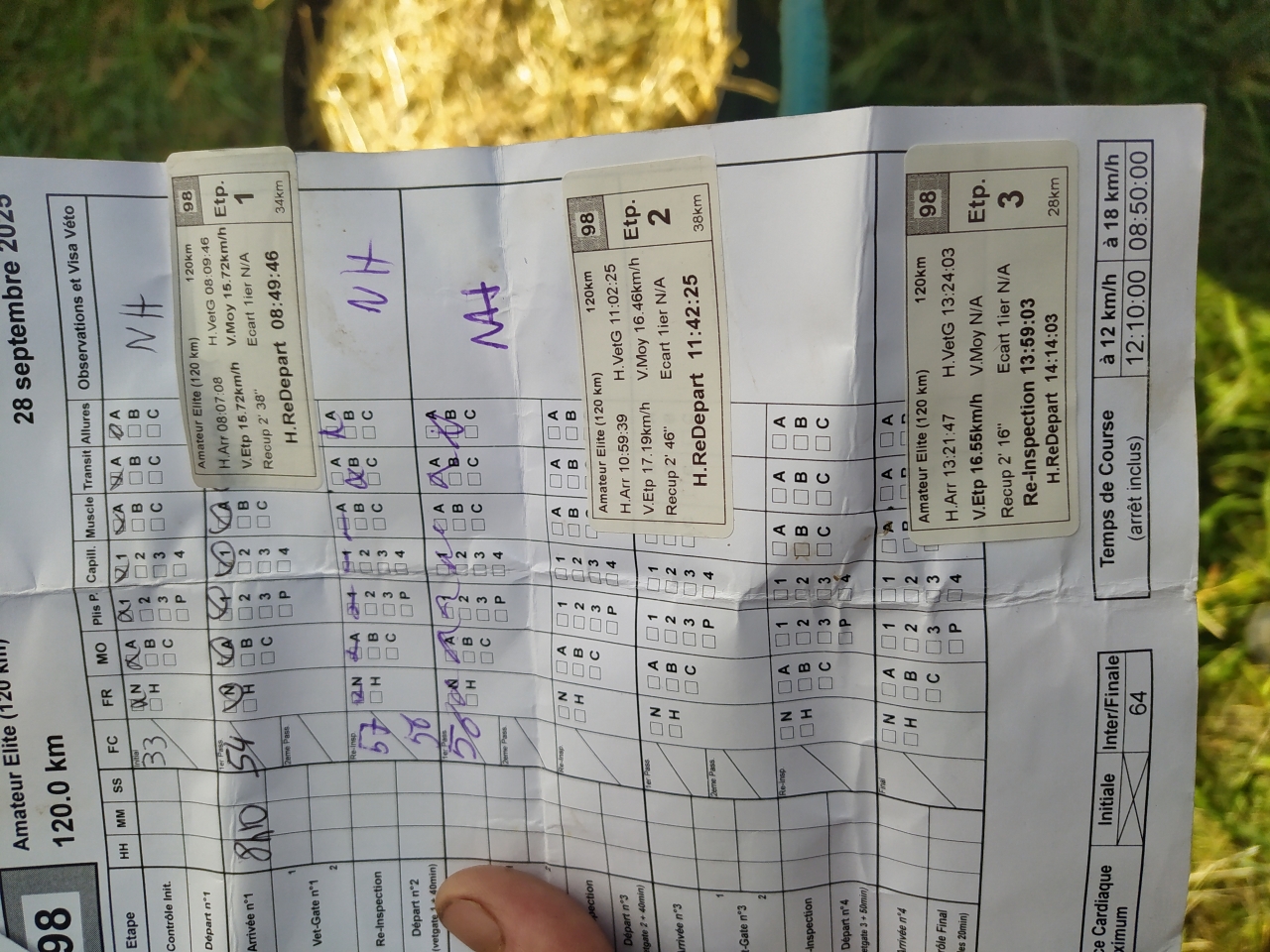 | Dire merci | 7h16 le jour se lève mais pas le soleil tant attendu...![]() On déroule la boucle à l'arrière, la jument en tete est en duplo et fait gaffe de ne pas glisser dans l'humidité des sols, le hongre suit et Naska subit un peu le rythme le trot est un peu fort pour elle et du coup au galop je la sens qui s'aplatit. j'espère qu'on va arriver à se caler, ma copine est seule pour l'assistance et elle comptait suivre les autres pour ne pas se poser trop de questions... Message édité le 30/09/25 à 22:47 |