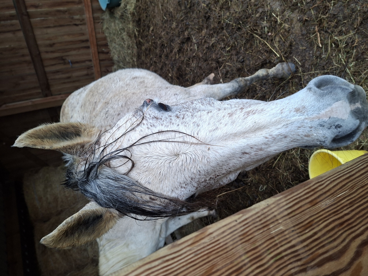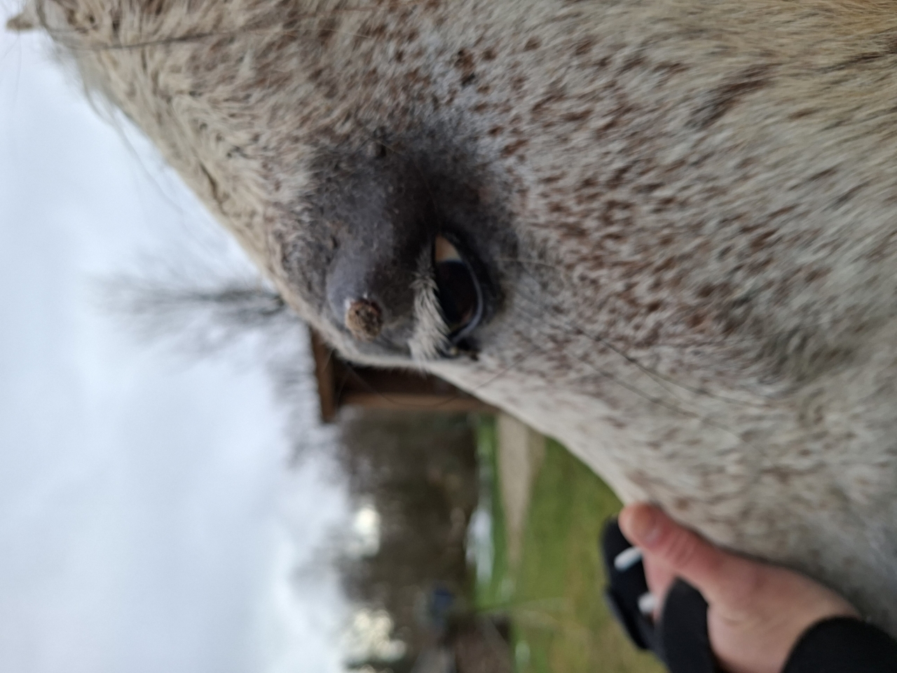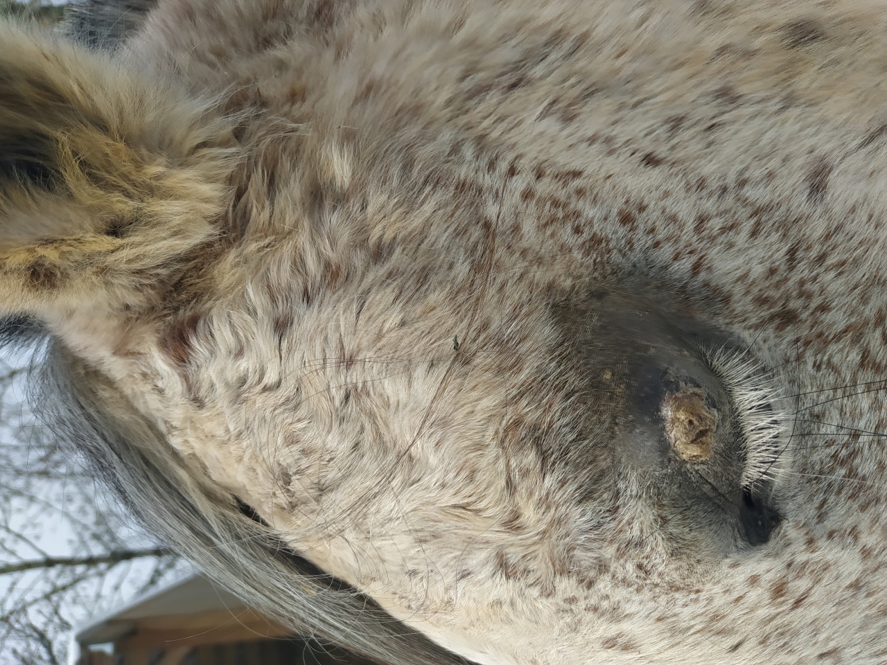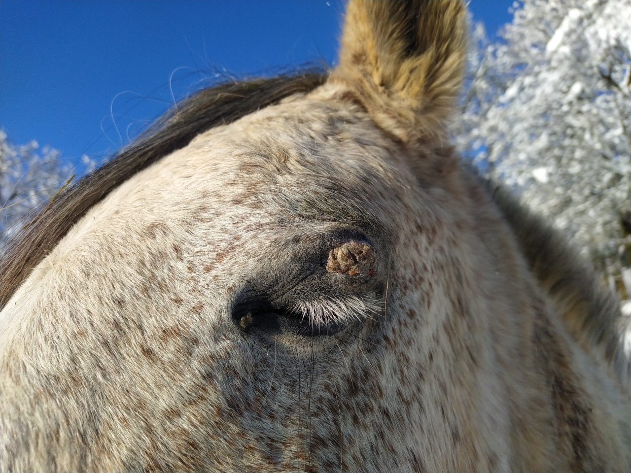 | Dire merci | c'est superbe ce beau manteau blanc !!! Bon, pour l'oeil on dirait que ça sèche, mais est-ce bon signe ? Le véto dit quoi ? Et pour la tendinite |