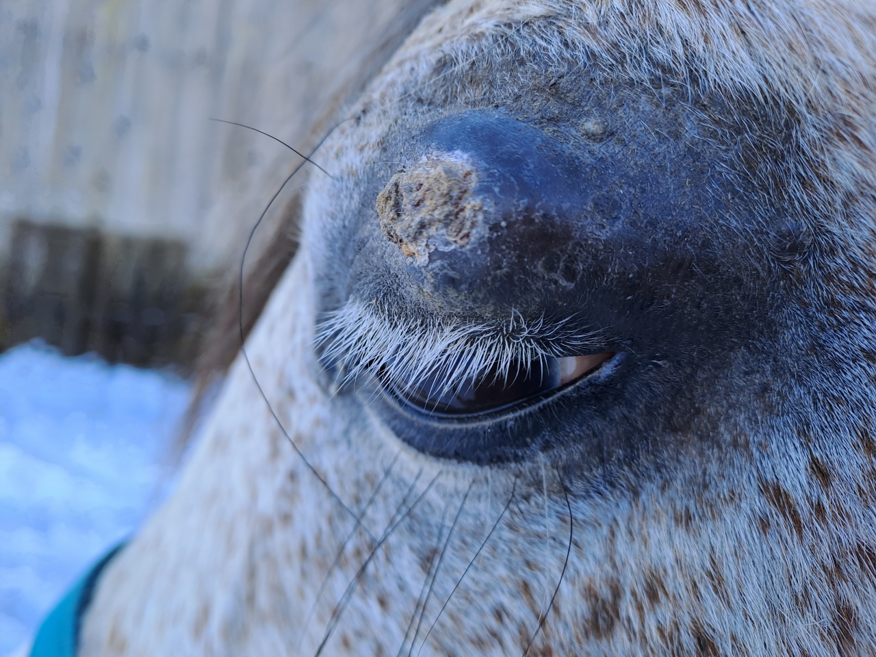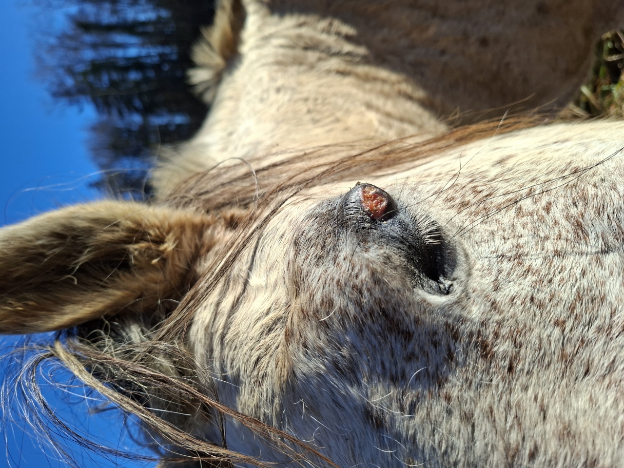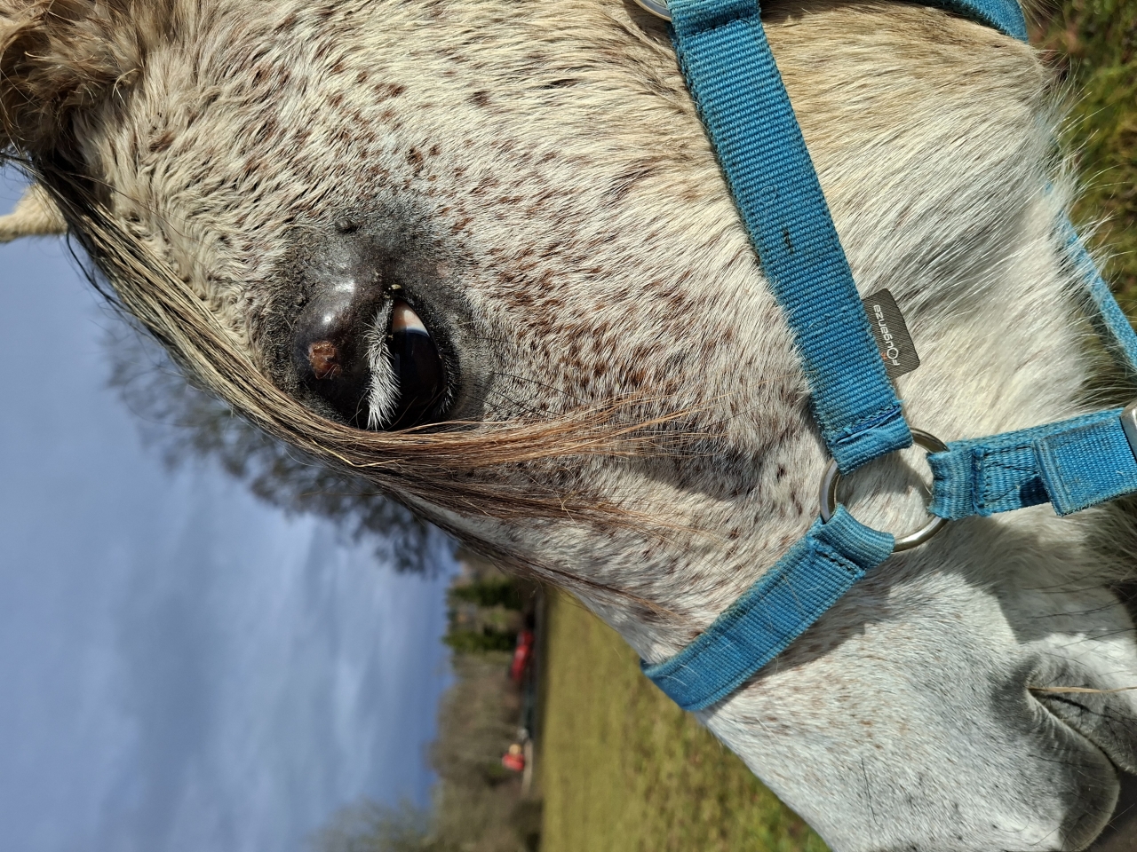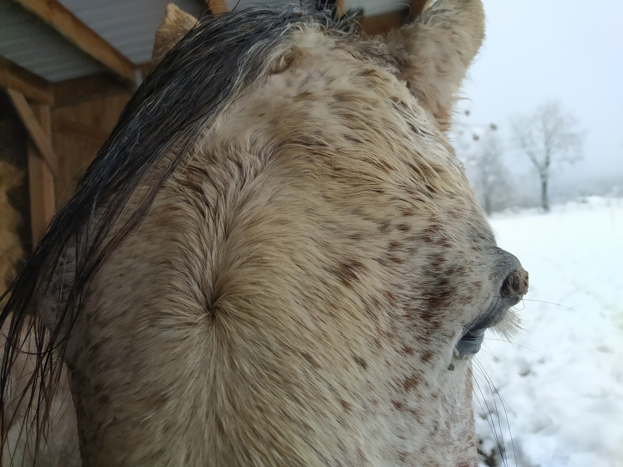 | Dire merci | c'est superbe ce beau manteau blanc !!! Bon, pour l'oeil on dirait que ça sèche, mais est-ce bon signe ? Le véto dit quoi ? Et pour la tendinite |