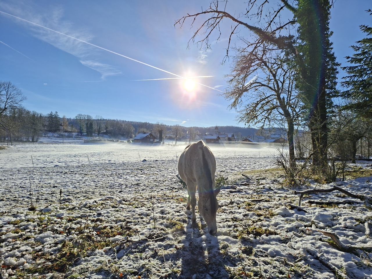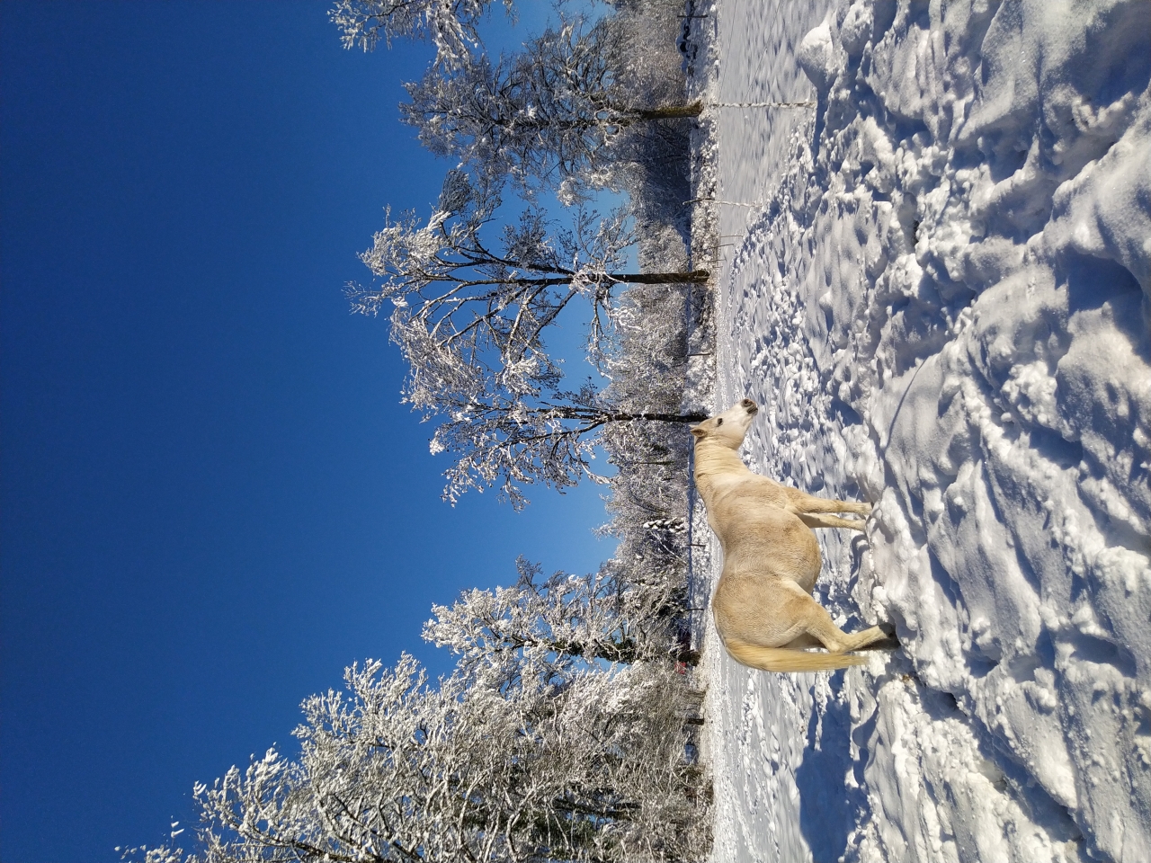 | Dire merci | toute cette neige Que dit le véto pour l'oeil ? Ca donne l'impression que les injections ne changent pas grand chose ? Bon courage pour ton poignet... |