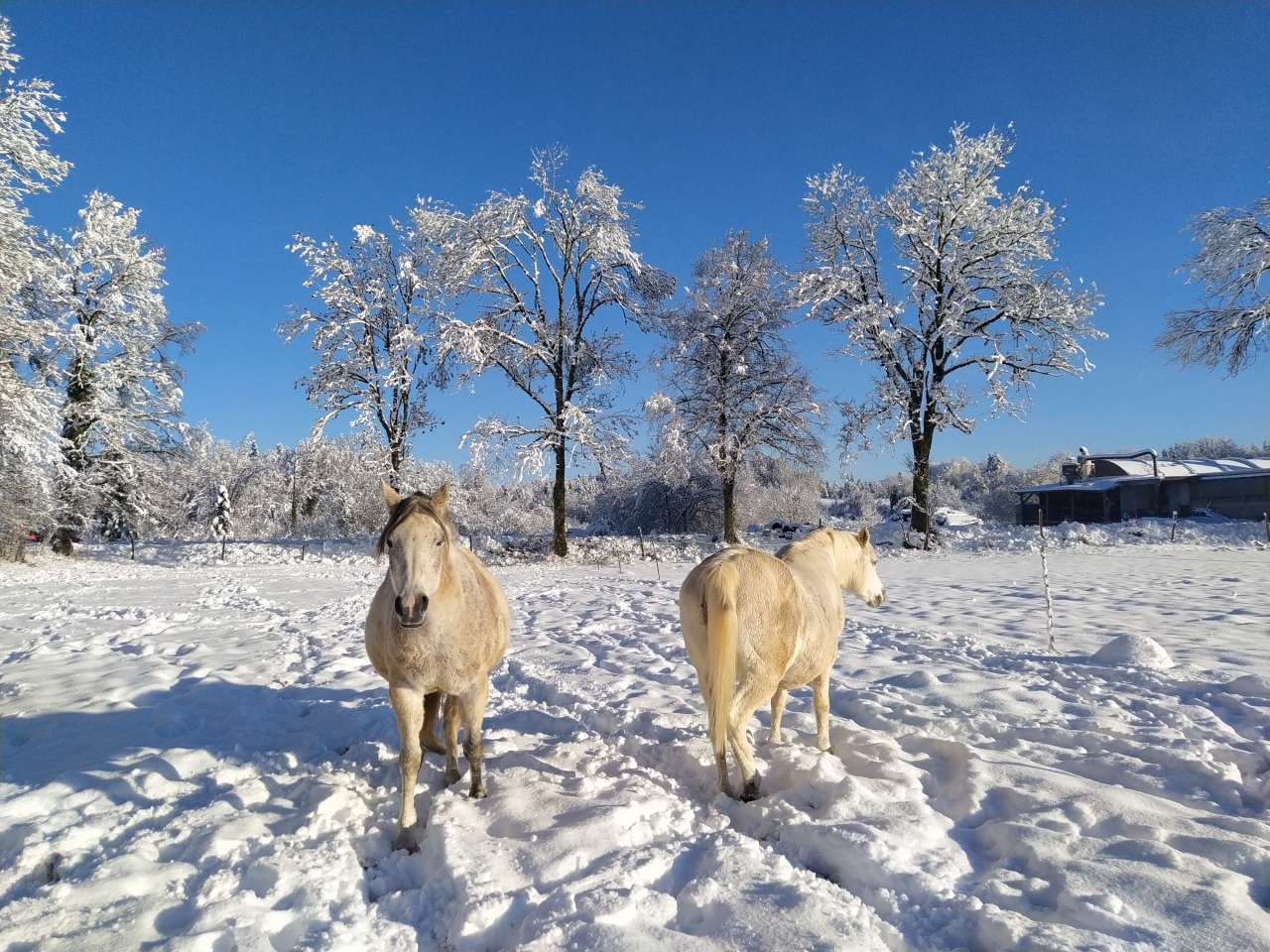 | Dire merci | le 28![]() j'ai reussi a avoir des news du veto, il la revoit en janvier; pour lui pas d interet a continuer les injections, on fait partie des 20% d'echec... moi je suis toujours en arrêt en mode handicapée... les juments ont donc accès libre au foin et mon fumier s entasse sous l abri ![]() |