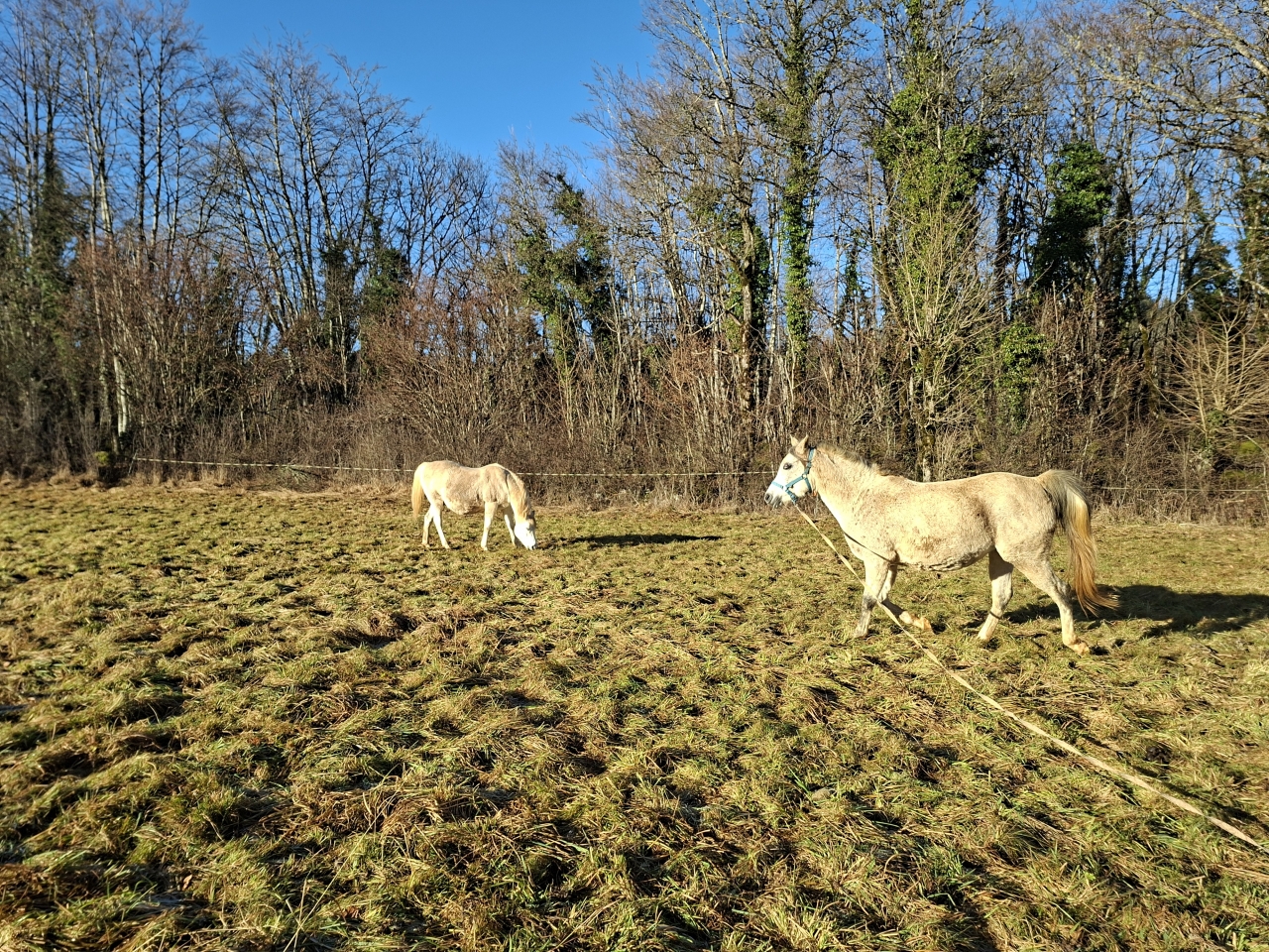 | Dire merci | lundi je vais passer une radio et on m envoie en urgence passer une echo... le doc pensait a une rupture, finalement je me suis juste bien esquinte le flechisseur ![]() les juments investissent bien le parc maudit ![]() mardi ![]() mercredi ![]() et jeudi rappatriement a la maison ![]() ![]() |