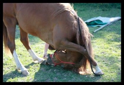 | Dire merci | Sympa les photos ![]() J'adore son licol ça fiat vraiment beau Par contre petit conseil pour ta révérence,là il est complètement arcbouté et va vite manquer d'équilibre ainsi...et ça tire sur le dos il faut qu'il recule ces postérieurs pour avoir une bonne position ;e et pour ça tu peux partir d'un campo...puis le faire descendre en révérence ![]() Message édité le 04/06/10 à 14:54 |