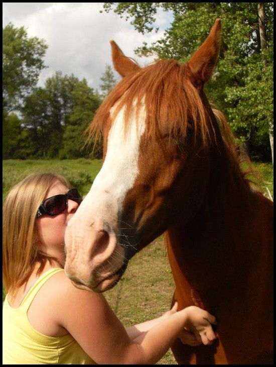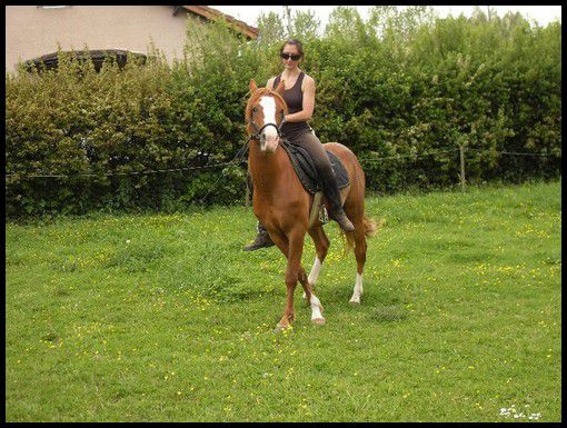 | Dire merci | Quelques news Shao va bien, il est à l'herbe depuis mi mars. Il a bien repris je suis contente. Il reprend aussi le muscles qu'il avait perdu durant ces 4 mois d'arret ![]() Points "santé" : Sinon, nous avons vraiment éloigné l'ataxie (j'en avais parlait lors de la castration. Il ne tribuche vraiment plus. (enfin normalement quoi ). Par contre, j'ai trouvé d'où venait son probléme "d'écroulement"... Il semblerait qu'il soit géner par moment au sanglage. J'ai eu le coup dimanche matin (depuis qu'il est débourré : j'ai eu 5 fois ce soucis) : Il se couche parterre et se releve, qu'une fois avoir désanglés... Pourtant je ne le comprime pas. (je sangle tjs au premier trou). Donc je sais pas trop quoi faire sur ce point. Il faut que je prenne contact avec l'ostéo aussi. Je pense qu'il a mal au dos. Quand je le brosse il se creuse. Ca va m'occuper pdt mes vacances Je n'ai pas de photos, mais promis je vous en fait cette semaine ! Et une au carré pour Sarah Sinon tjs à la recherche d'un prof de "dressage"... Mais je suis sur une piste, merci Bountie ! |