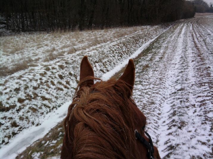 | Dire merci | Un petit peu de nouvelles par ici ! Tout va bien pour nous dans notre Beauce profonde ! Malgrés ce froid, qui nous force pas mal à faire que des ballades tranquilous, le sol étant vraiment dur ![]() Le traitement à Shao est fini ! Les petites cloques ne se sont pas étendues ! Elles sont restées sur ses petites fesses lol, le véto m'a conseillé de passer le produit uniquement sur ses plaies, mais je pense faire un gros shampooing aux beaux jours ! Le maréchal est venu début de semaine, il a rien touché aux pieds ! Shao est pieds nus pour l'hiver, car avec les fers c'est un vrai cascadeur, ce qui devenait dangereux pour lui et pour moi ! Je vous racontes pas les chutes ![]() Sinon il est en mode "crise d'ados" et est dans sa période "test" mais il reste quand meme trés agréable, et gérable ! ![]() N'ayant pas fait de photos récemment, je vous mets de pix d'hier matin en ballade ! Histoire de ne pas vous laissez sans rien ![]() ![]() |