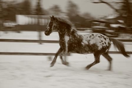 | Dire merci | Je participe avec 2 photos de mon pinto, Ryder, 15 ans :![]() et une, dans la neige ![]() |