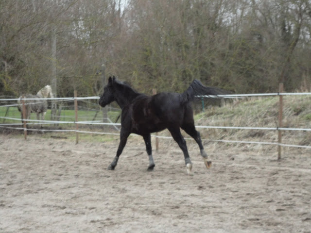 | Dire merci | Des nouvelles es gros en ce jeudi : Michou a la fraîcheur de ses jeunes années ! Et vas-y que je bouffe les fesses du nain, que je mordille les poneys qui sont au paddock, que je galope à fond les ballons, que je montre que moiaussi je peux me mettre debout ... Black, lui, galope au moindre mouvement suspect de la chambrière, même quand, posée contre le mur, elle glisse sur le sol ! Zelena, de son côté, observe les deux gros se courir après, se cabrer et prie pour qu'ils ne viennent pas l'embêter ! Et voilà ![]() |
