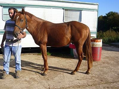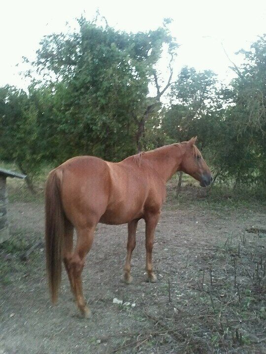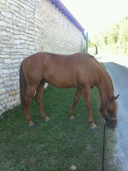 | Dire merci | Alors bonjour tout le monde. suite à des demandes je fais enfin mon post sur mon loulou ! je vous présente Rock, half quarter de 4 ans bientot 5 (DEJA) ! Ca fait un petit peut plus d1 an quil fait parti de ma vie. Nous avons eu un passé pas facil tous les 2 et le jour où nous avons été reuni tout a changé ! Je l'ais acheté étalon et il avait 3 ans. Un cheval qui avait fait élevage, vendu je ne sais combien de foi avent détre acheté par son ensien proprio un marchend de chevaux à 2 ans ! Je lais acheté il était sur loeil. Je me rappel que jétais devant son boxe, il mavait vue jai levé le bras et il a eu peur. Suite a un prob dépaule pour moi et pour lui prob. de pied nous avosn passer plusieur mois à faire que du travail a pied ! ca a été trés bénéfique parce quil ma fait confiance et nos lien ce sont vraiment soudé ! c'est un cheval qui est trés proche de l'homme, plus sur loeil mais trés sensible. Si je vais pas bien ou si il va pas bien nous nous le transmétons. Bref sinon à la basse il était dans le western. J'ai une selle western mais je peux pas la porter trop lourde pour mon épaule. Donc je lais mis au classique. Nous faisons de tout balade, dressage, beaucoup de liberté. Il va commencé sa saison de TREC avec moi cette année et je veux travailler aux longues rénes aussi. Voila voila. Place aux photos ! le premié jour ![]() ![]() |
