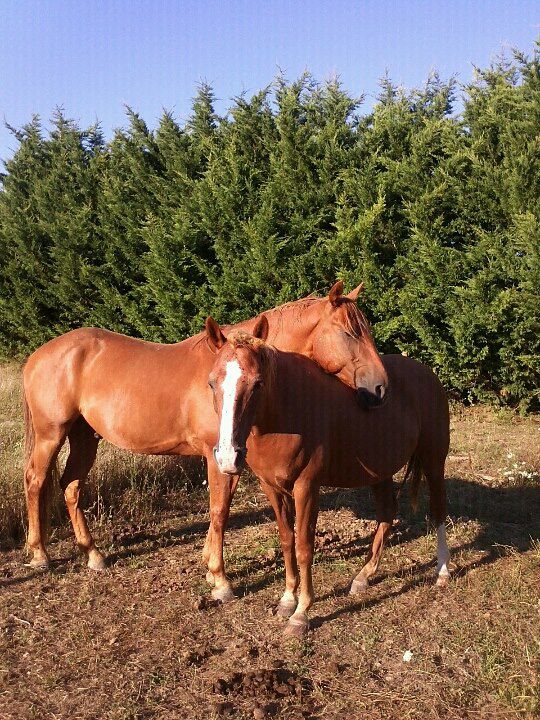 | Dire merci | Alors hier op op op je vais chercher mon gros et la grrrr il ne veut pas que je l'attrape mais jy arrive quand meme avec la bouf. Je le selle.. adorable il n'a meme pas peur de la selle (pas normal ca ) et petit tour trankil avec un pas trés actif. Monsieur est en forme donc je le "boss" vite fait au pas et au trot et op on rentre il va faire nuit. Je le relache et la moment de calin, mon nounours était en manque Je ne voulais pas faire une grosse seance vu qu'il n'est pas top dans son arriére main c été surtout pour le morale P.S. les photos sont pas top |