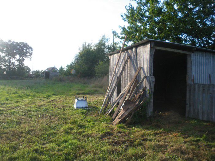 | Dire merci | Un des boxes avec la "sellerie" (où je met pas mes selles elles sont dans une autre sellerie dans la maison, là c'est où on stocke la bouffe)![]() Là 2 boxes et la sellerie, c'était il y a 5 ans, un boxe a été rajouté à la place de la stabulation du fond. ![]() Là on voit le 3eme boxe, & le pré, qui part aussi derrière les boxes, à droite. ![]() & la nouvelle stabulation ![]() La partie du pré devant les boxes que j'utilise comme carrière. ![]() Le garage pour le van, au fond. ![]() |
