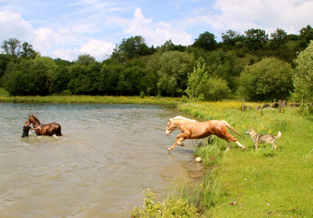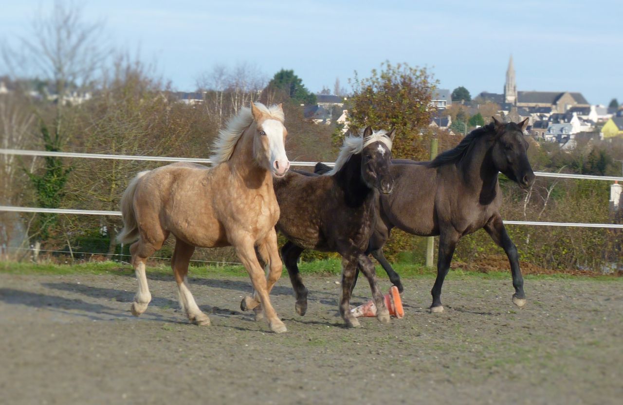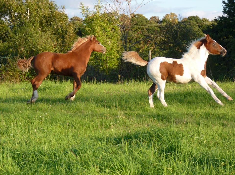 | Dire merci | Pas de problèmes avec cashmere pour le moment !! Il est calme et les juments lui ont bien appris qu'il fallait se tenir à carreau ! Prochaine étape le débourrage mais sûrement pas avant la fin de l'année ou début de l'année prochaine, il faut qu'il grandisse encore un peu ! Pour l'instant il connait les ordres vocaux en longe et accepte la selle. Siera la comtoise attend aussi un poulain de lui pour septembre. Azure va faire une pause cette année du coup il est possible qu'on fasse saillir astuce , mais sûrement par un autre étalon. |