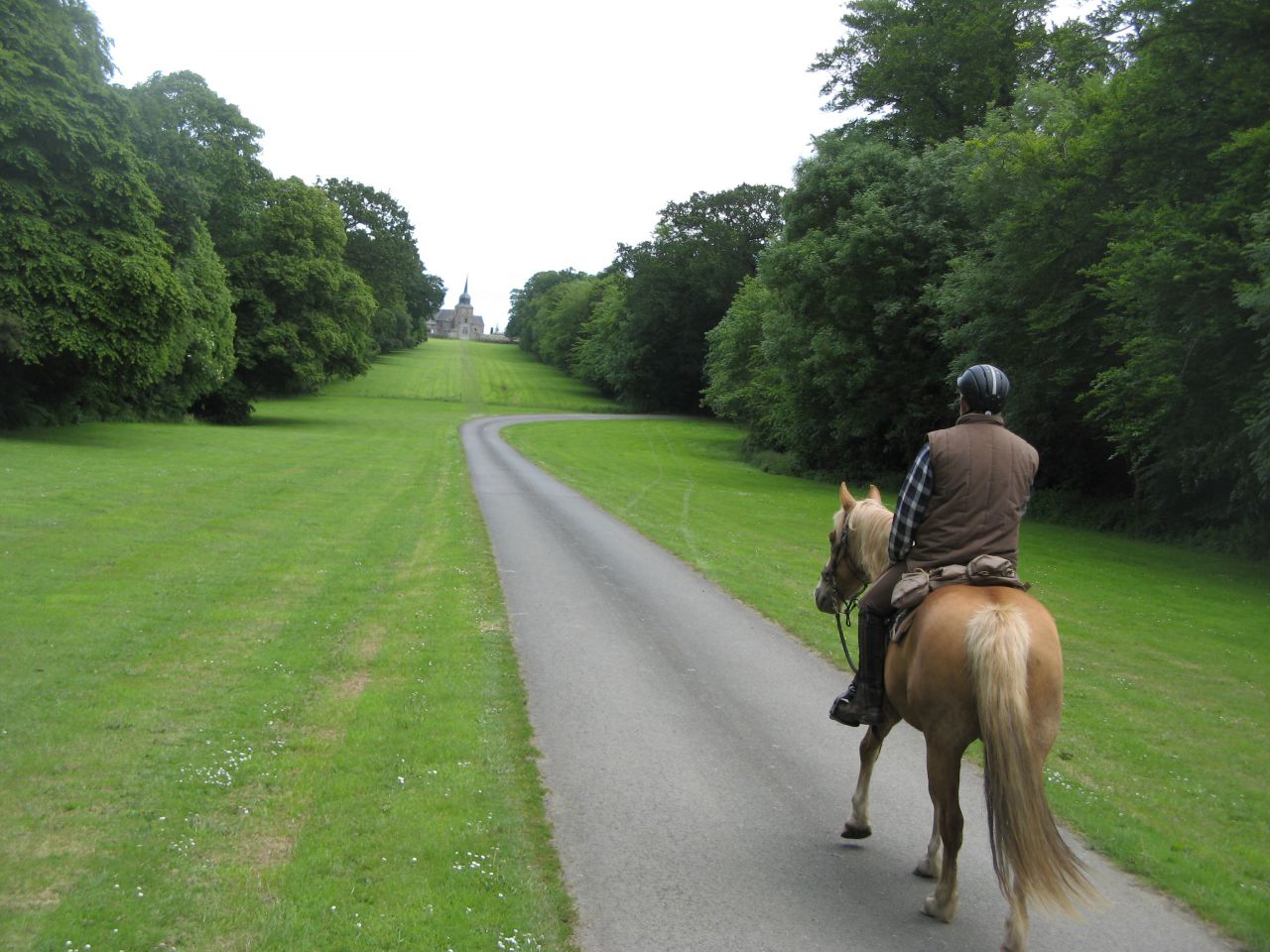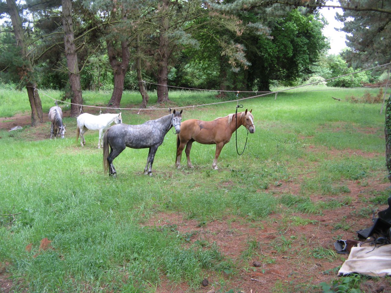 | Dire merci | Heureusement il restait peu de km l’après midi ! et ce soir les chevaux dorment dans les prés d’un château ! une fois installés nous avons fait un peu de tourisme dans la ville d’a coté ! ![]() ![]() 6ème jour : Saint aubin de Locquenay – Alençon (32 km) Matin du 6ème jour ! dans notre gite ! ![]() et voilà ou les chevaux et mes parents ont passé la nuit, à coté de la ferme du château ! ![]() le petit fils du propriétaire du gite à fait un baptême de « poney » ! ![]() Pour cette journée et la suivante nous avons été accompagné par une cavalière du coin qui montait un barbe qui avait un air de famille avec fahren ! ![]() le soir étape dans un centre equestre ! je parie que nos chevaux préféraient être de ce coté de la barrière ! ![]() ![]() 7ème jour : Alençon – La chapelle près sées ( 28 km) journée très chaude pour rejoindre le J-1 (c’est une étape juste avant l’équirando qui est organisée pour reçevoir un grand nombre de cavaliers !) Heureusement une grande partie de la journée va se faire dans la foret d’ecouves ! c’est absolument magnifique mais il y a beaucoup de denivelés !! avec cette chaleur les chevaux peinaient un peu du coup on a pas mal marché et souffert ! Arrivée au J-1, il y a déjà beaucoup de monde d’arrivé ! ça fait bizarre de voir autant de monde après avoir passé une semaine tranquille dans les prés ! On passe au contrôle véto, ça sera ça de moins à faire le lendemain à l’arrivée au haras du pin ! les vétos vérifient les carnets des chevaux (vaccination) les regarde trotter et prennent leur fréquence cardiaque. 30 min après l’arrivée, Queiros est à 50 mais par contre azure est à 80 ! on n’est pas étonné la journée a été dure pour elle ! Tyrock et Fahren en bon barbse affiche un petit 40 ! Le repas du soir est animé, presque un peu trop , on s’était habitué au calme, donc on s’eclipse vite ! ![]() |