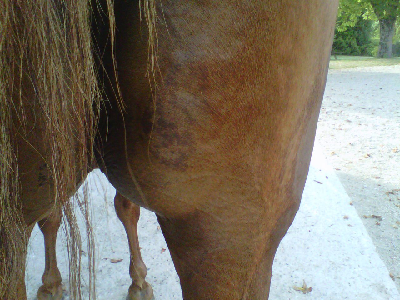 | Dire merci | Visite à l'éclopée ce soir. Les AI ont fait effet même si quand même pas mal enflée sur le postérieur le plus touché. Elle boite quasi pas au pas, au trot par contre c'est encore très fort. Ce soir douche, repommade, vermifuge et encore une dose AI J'ai des photos d'hier faut que je vous les mettent |