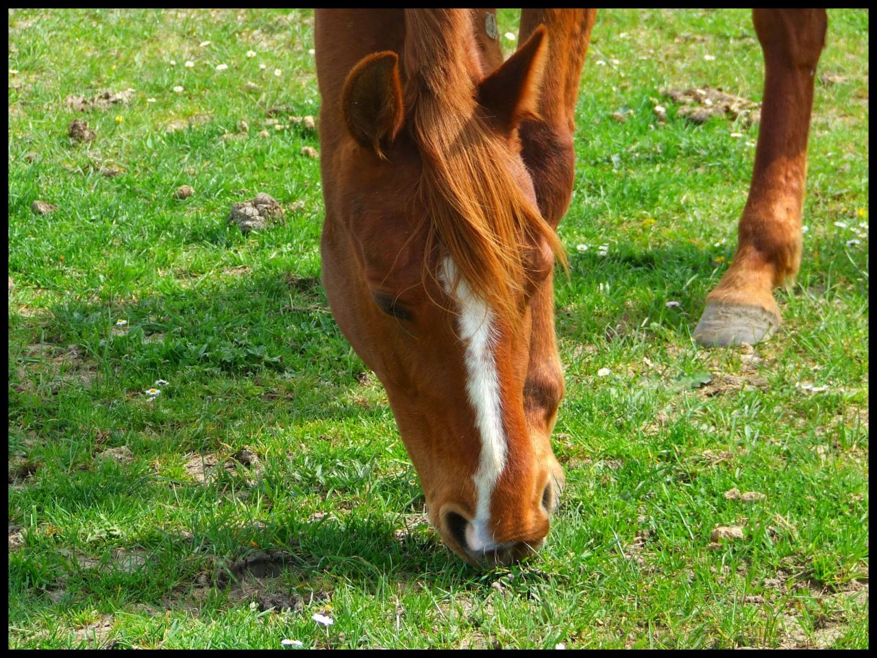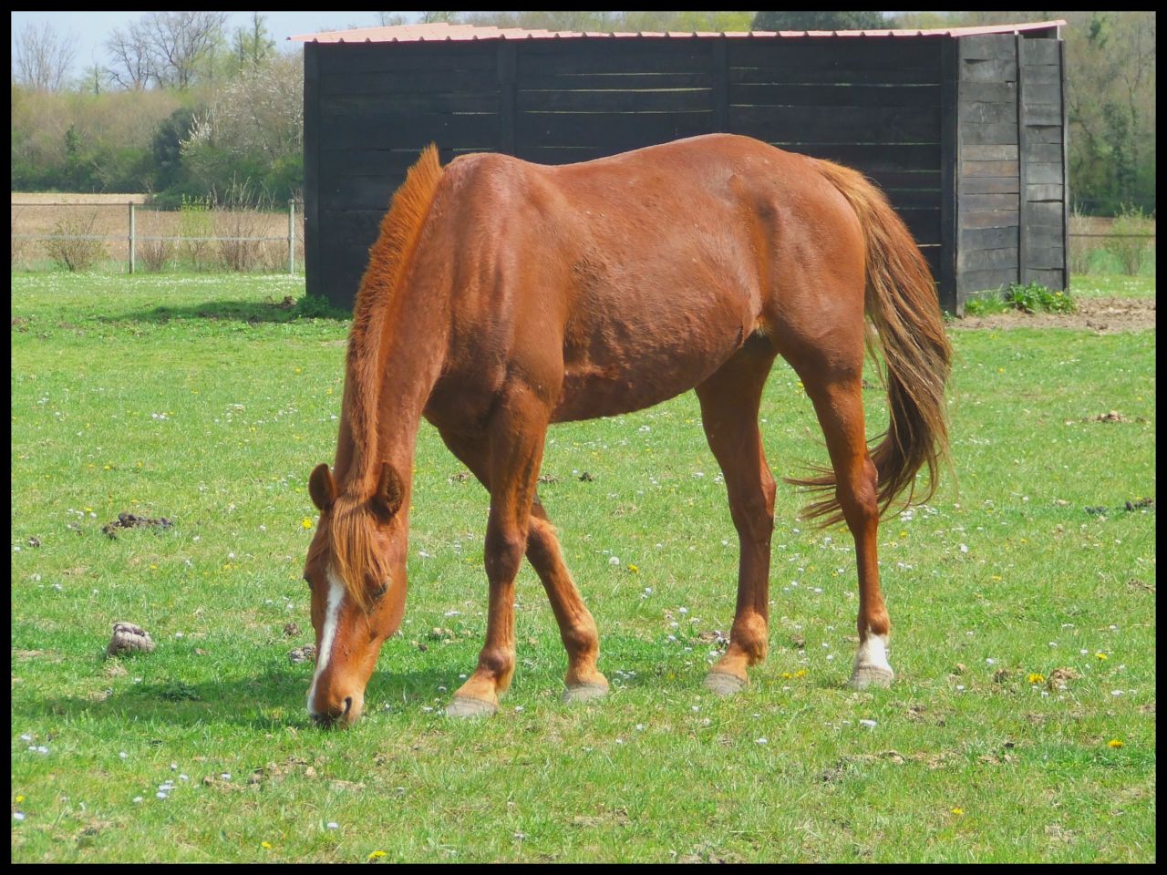 | Dire merci | Quand changement de pature ou changement de copains, on sait très bien que c'est là qu'il peut y avoir des accidents au pré! J'aurai mal pris le fait de ne pas être averti.Le changement de pré et l'ajout d'un copain, j'étais au courant depuis un moment, on m'a demandé mon accord avant. La moindre des choses quoi. Et je sais que la surveillance était là (il y a même des photos )...Bref, j'espère que Queen n'avait pas grand chose niveau bobo! |