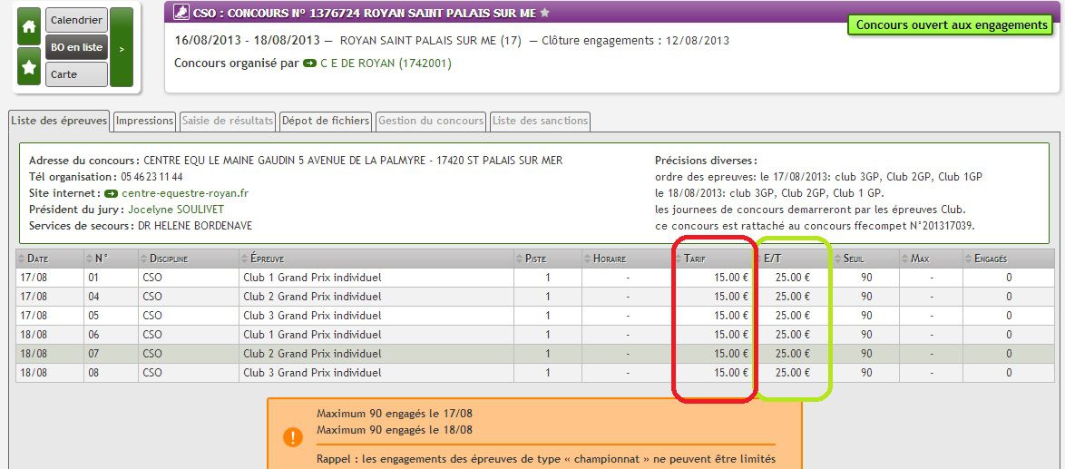 | Dire merci | Question du soir : Quelle est la différence entre les colonnes rouge et verte ? Je dois envoyer quel montant au club pour un engagement simple ? ![]() |