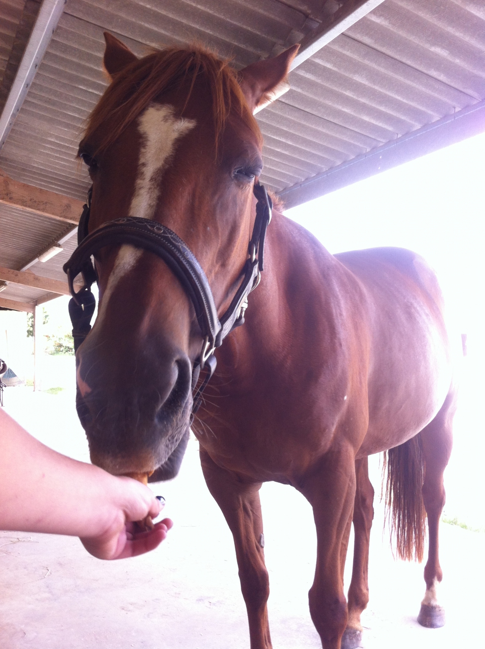 | Dire merci | bestline C'est marrant moi je trouve que justement les contre bas, gué (flaque) etc sont plus facile à trouver en foret que des tas de bois et autres obstacles un peu plus regardant. hygie tu veux que je demande s'il y pas une petite place pour toi ? ![]() Les NEWS : Lundi on a seulement fait une petite longe. Je suis ravie elle progresse vraiment de ce côté ce dernier temps ! Et même qu'elle commence à comprendre le principe de mettre le nez au sol pour tirer son dos Par contre c'est marrant comme elle me le fait bien plus quand elle est avec le "licol étho" alors que pourtant les noeud n'appuient pas vu qu'elle ne tire pas dessus. Par contre elle me coupe toujours un côté du cercle ça ça m'agace ... Et avec la chambrière je m'emmèle donc j'avoue que je prefère longer sans rien ... Ou alors faudrait juste que je prenne le stick. A réfléchir Et puis mercredi après le boulot je suis allée me faire une petite séance sur le plat et du trot assis Je rêve d'une jument fauteuil !!! Là clairement je galère +++. Déjà va falloir que je me trouve une etrivière pour éviter de mettre des coups dans la bouche parce que là oups ...Et puis tant qu'à faire j'ai mes pointes de pieds qui font le cannard aussi ![]() Donc à bosser réellement un peu à chaque séance dans un premier temps. Sinon Queen elle elle n'était pas si mal pour un soir (elle est toujours beaucoup plus dispo quand je monte le matin) même si elle avait envie d'avancer ce qui ne m'a pas aider Hier j'ai seulement donner 3 carottes et des caresses. Voilà pour notre semaine |