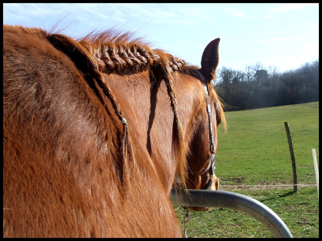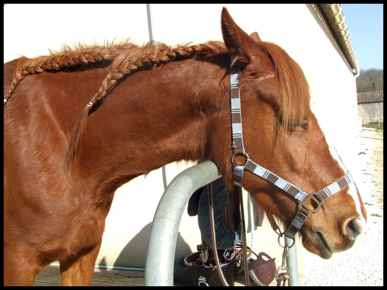 | Dire merci | Fraise Les tresses c'est des toutes simples au final, mais c'est avec plaisir que je ferai ça sur la tignasse des tiens et que je te montrerai. Sur queen je suis encore obligée d'en faire deux, elle a pas encore les crins assez longs pour qu'elle tienne sans bouger sur une balade de 2 heures. Sinon j'ai entamé mon avant dernière semaine ici !!! |