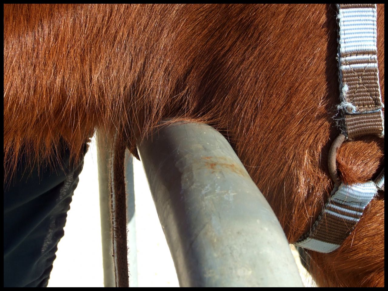 | Dire merci | t'enlèves la barre. elle tombe c'est vraiment ça !! C'est marrant comme plus le temps passait plus elle se rapprochait de la barre ça se voit bien sur ces photos, et le pire c'est que c'était avant la balade, à croire que le près l'épuise t'es encore plus pro que moi Vraiment pas convaincue, en tout cas moi je mets 3 fois plus de temps ! Et pour le licol oui faudrait que j'essaye ça tient ![]() |