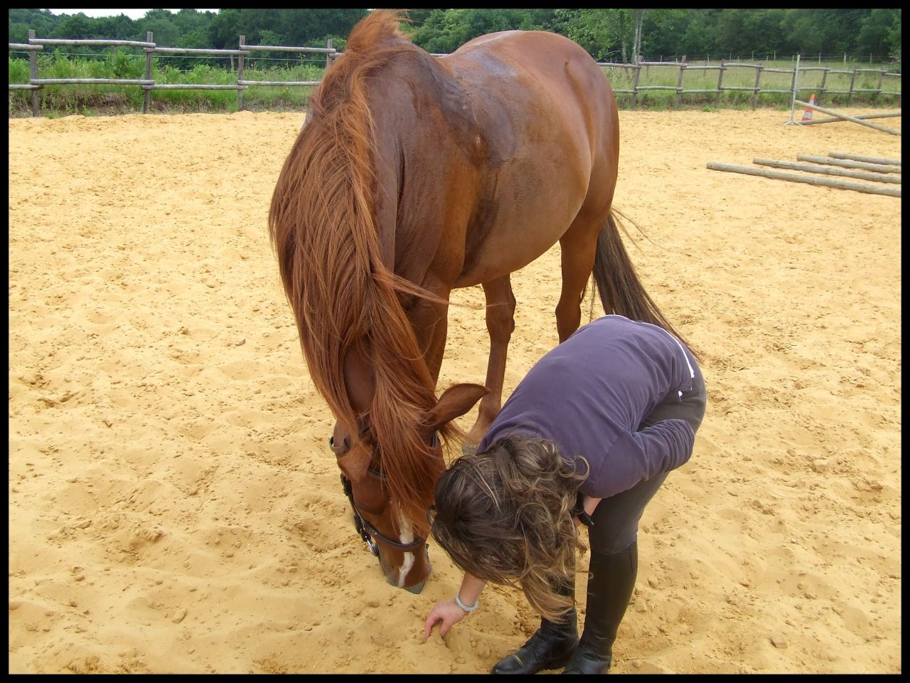 | Dire merci | Et maintenant on passe au crapaud (bon maman a un peu de mal mais pas grave elle a quand même fait quelques bonnes photos)Et GROS DEFAUT de ma part, je regarde les oreilles constamment ![]() ![]() ![]() ![]() Début de séance, le fauve n'est pas encore arrivée ... Elle me fait de bonnes choses.![]() ![]() ![]() Beurk caca d'oie ![]() On reprend un peu mieux. ![]() Puis on marche un peu rênes longes. ![]() |