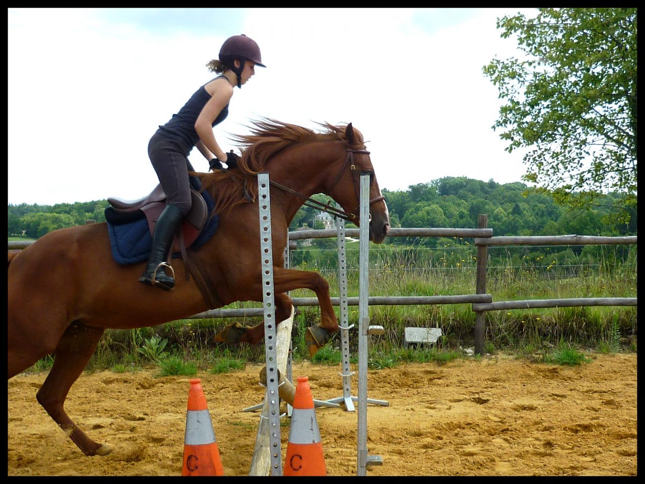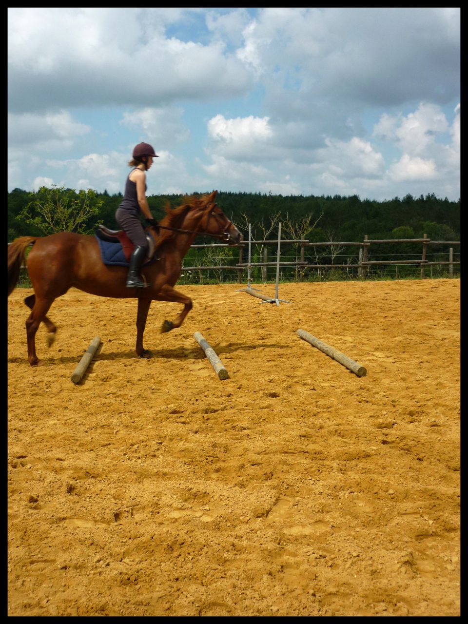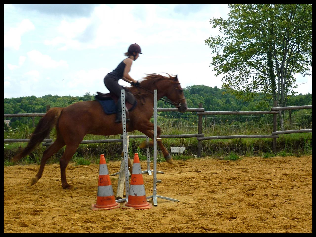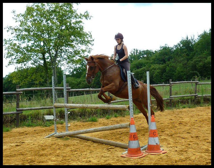 | Dire merci | Vanou en hauteur j'ai calculé a vu de nez en rentrant chez moi il devait y avoir un petit mètre. Moi ça m'a paru 1m05 environ mais apparement non. Du coup ça m'a déçue Sur les premières j'aborde au trot, le reste c'est au galop. Pour la barre de réglage je t'avouerai que je travail rarement voir jamais avec. Vu qu'en concours il n'y en a pas, je veux l'habituer comme ça. Quand elle part de loin généralement c'est ma faute je la lache devant |