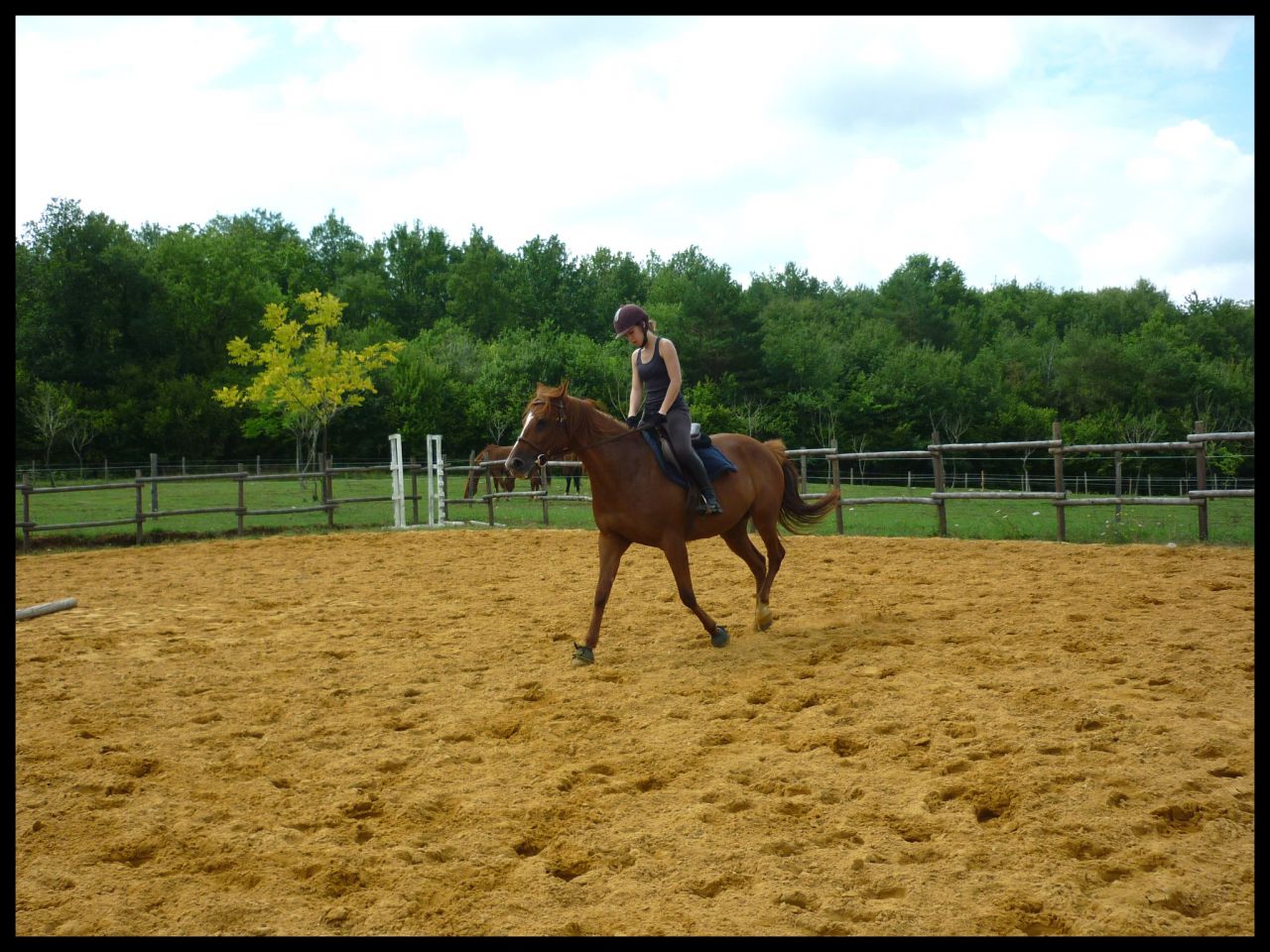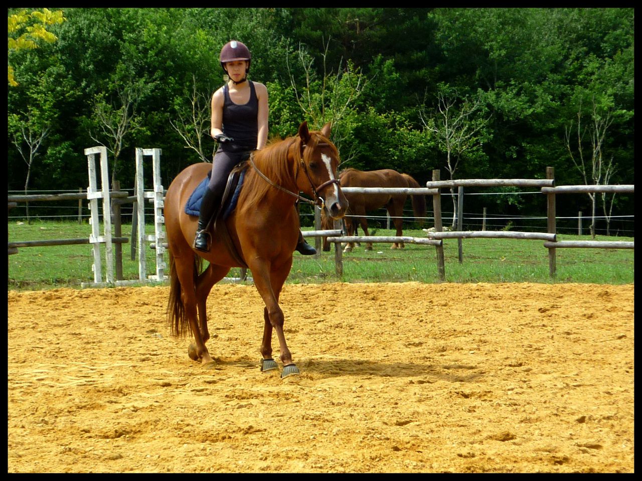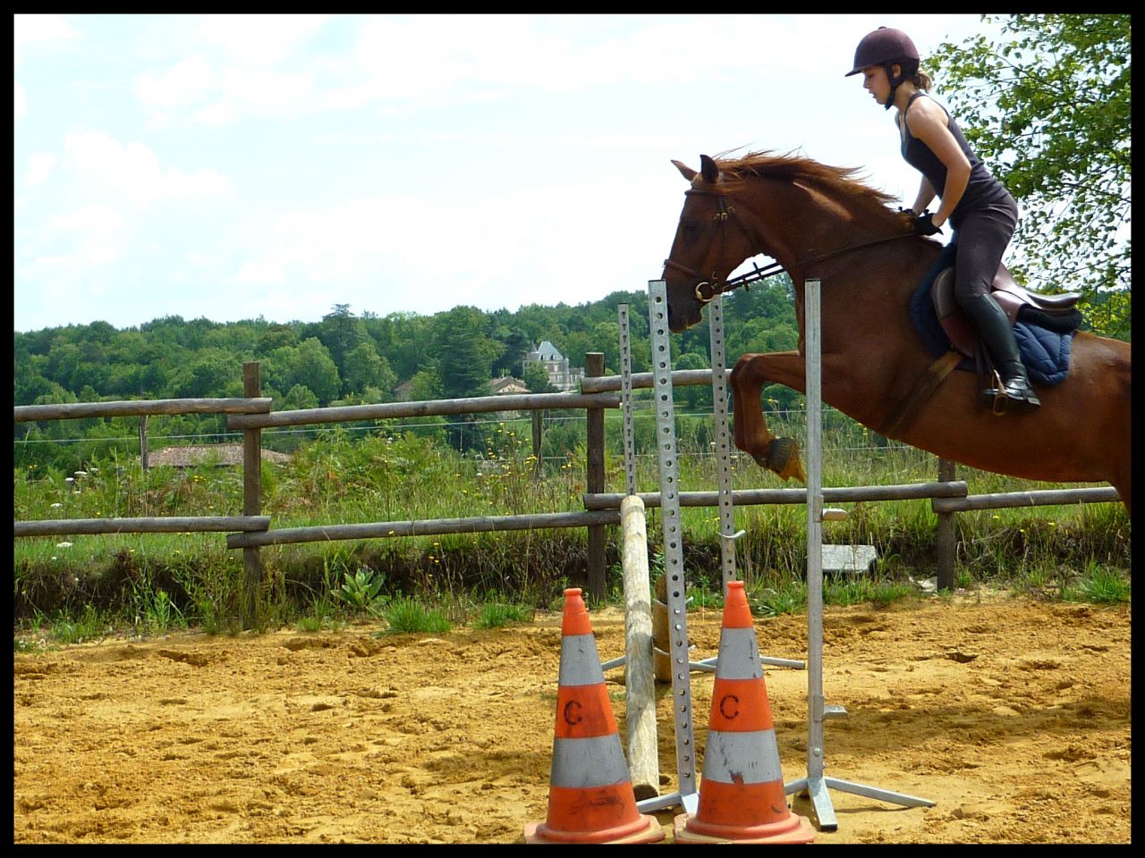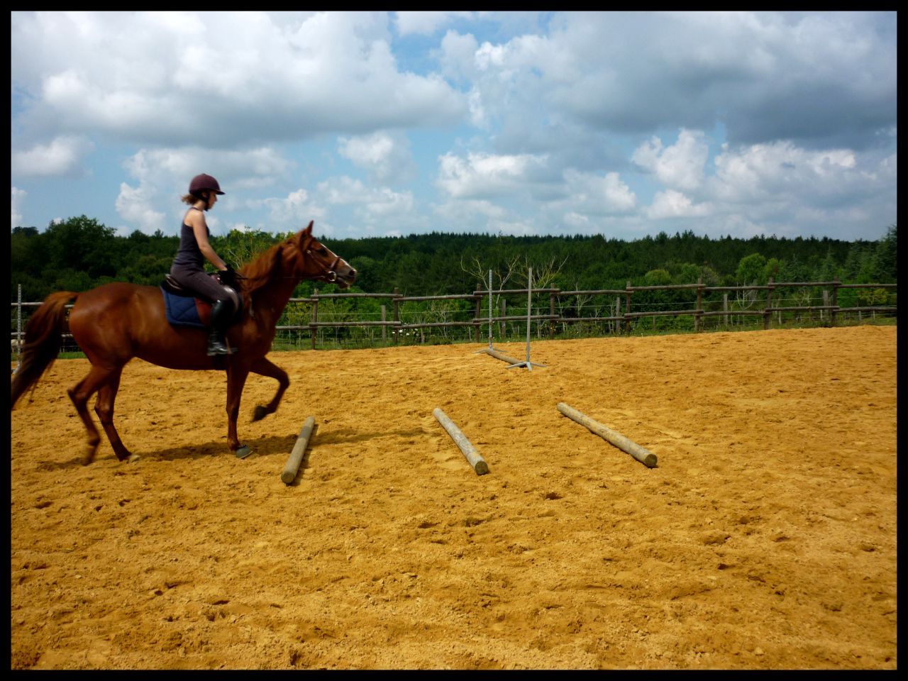 | Dire merci | Vanou en hauteur j'ai calculé a vu de nez en rentrant chez moi il devait y avoir un petit mètre. Moi ça m'a paru 1m05 environ mais apparement non. Du coup ça m'a déçue Sur les premières j'aborde au trot, le reste c'est au galop. Pour la barre de réglage je t'avouerai que je travail rarement voir jamais avec. Vu qu'en concours il n'y en a pas, je veux l'habituer comme ça. Quand elle part de loin généralement c'est ma faute je la lache devant |